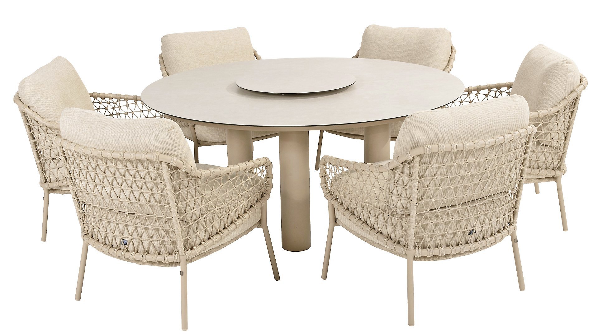 Der Donato Tisch ist mit einem Durchmesser von 160 cm eine tolle Ergänzung für jeden Essbereich und eignet sich ideal für gesellige Runden. Das Besondere an diesem Tisch ist die Gestaltung seiner Beine: Mit insgesamt drei dreieckig angeordneten Beinen bietet er nicht nur Stabilität, sondern auch eine markante, verspielte Optik. Die Keramik-Glas-Tischplatte verleiht ihm eine luxuriöse Ausstrahlung und ist gleichzeitig pflegeleicht. In der Taste by 4 Seasons Outdoor Donato-Serie gibt es einige Möglichkeiten, so ist er als Esstisch in den Farben erhältlich: Taste 4Seasons Donato Tisch Ø160cm Latte & Taste 4Seasons Donato Tisch Ø160 cm Terre, was es Ihnen ermöglicht, das perfekte Match für Ihr Interieur zu wählen. Um die Mayonnaise oder die Milch an die Person gegenüber zu reichen, fügen Sie einfach den: Taste 4Seasons Donato Lazy Susan dem Ganzen hinzu. Außerdem ist auch eine Low-Dining-Variante in der Farben Latte & Terre erhältlich, ideal für ein informelles und entspanntes Speiseerlebnis: Taste 4Seasons Donato Low Dining Tisch Ø160cm Latte, Taste 4Seasons Donato Low-Dining Tisch Ø160 cm Terre. Was gibt es noch?