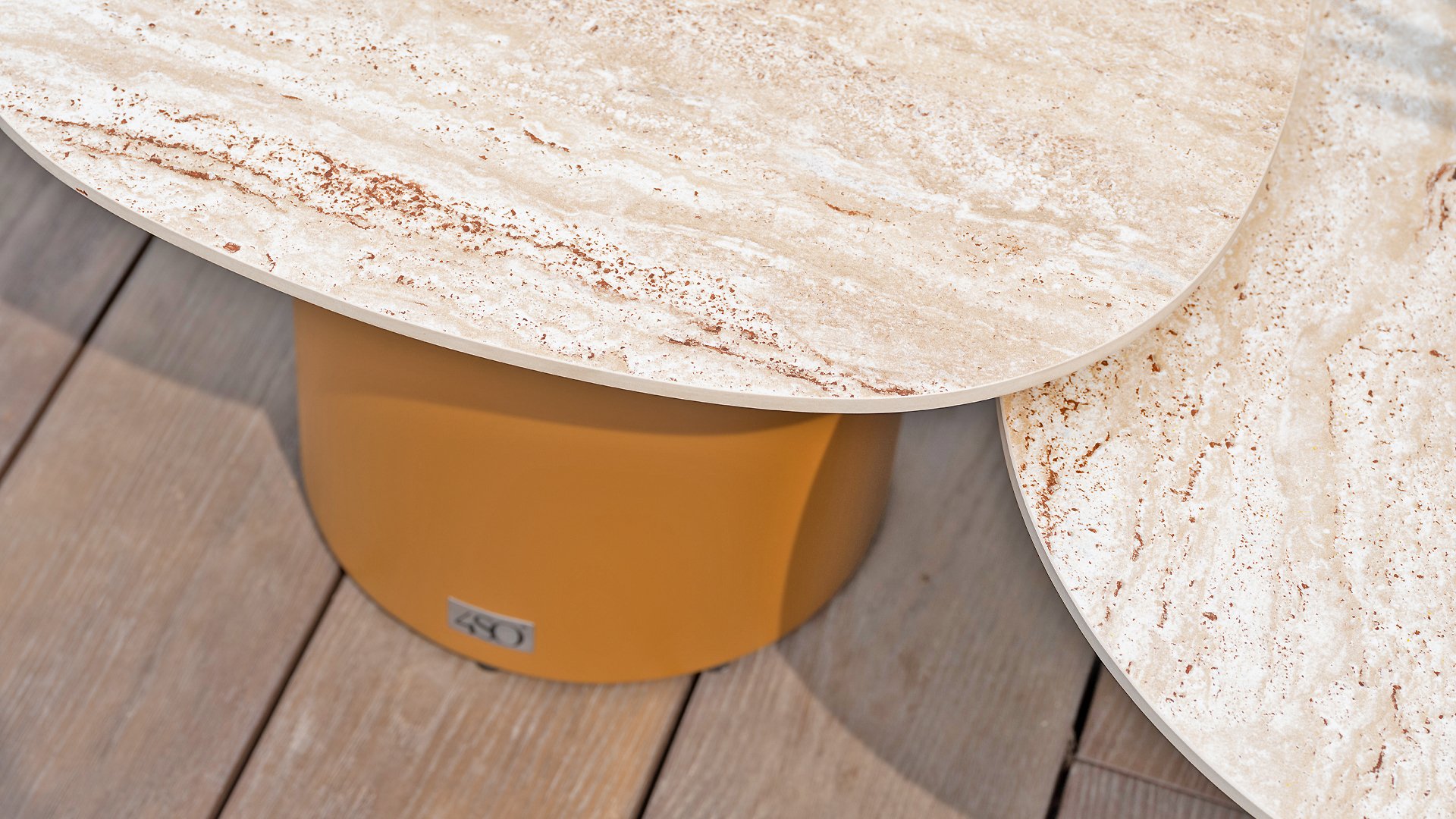 Bringen Sie Stil und Funktionalität in Ihren Außenbereich mit dem Sofie Beistelltisch, der über eine elegante Keramikplatte in warmer Terre-Farbe verfügt. Dieser Beistelltisch eignet sich perfekt neben einer Lounge- oder Gartensitzgruppe, wo er einen stilvollen Platz für Getränke, Bücher oder Dekoration bietet. Die keramische Tischplatte ist nicht nur ästhetisch ansprechend, sondern auch wetter- und kratzfest, was sie ideal für den Einsatz im Freien macht.