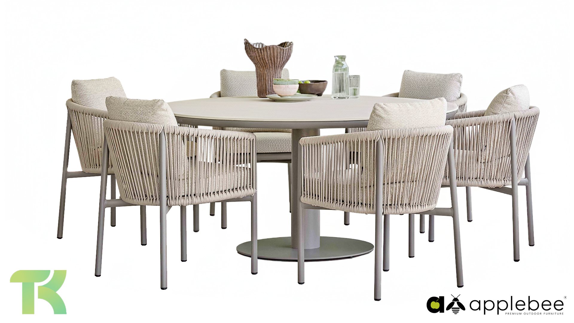 Entdecken Sie den Apple Bee Melville Tisch – ein stilvoller Blickfang, der Ihren Außenbereich aufwertet. Mit seiner runden Form Ø160x77cm schafft dieser Tisch mühelos eine gemütliche Atmosphäre für lange Sommerabende, stimmungsvolle Dinner und entspannte Momente mit Familie und Freunden. Erhältlich in zwei Farben: Oyster und Taupe.
