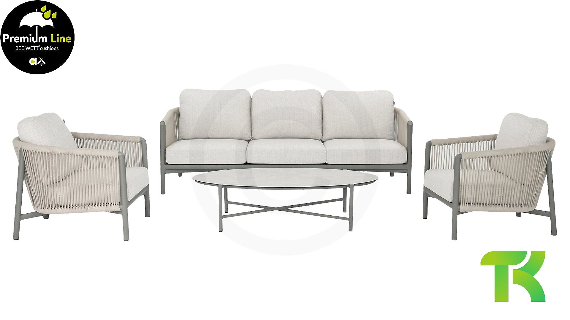 | Materialien Loungegruppe | Rope, Pulverbeschichtet Aluminium/Stahl |