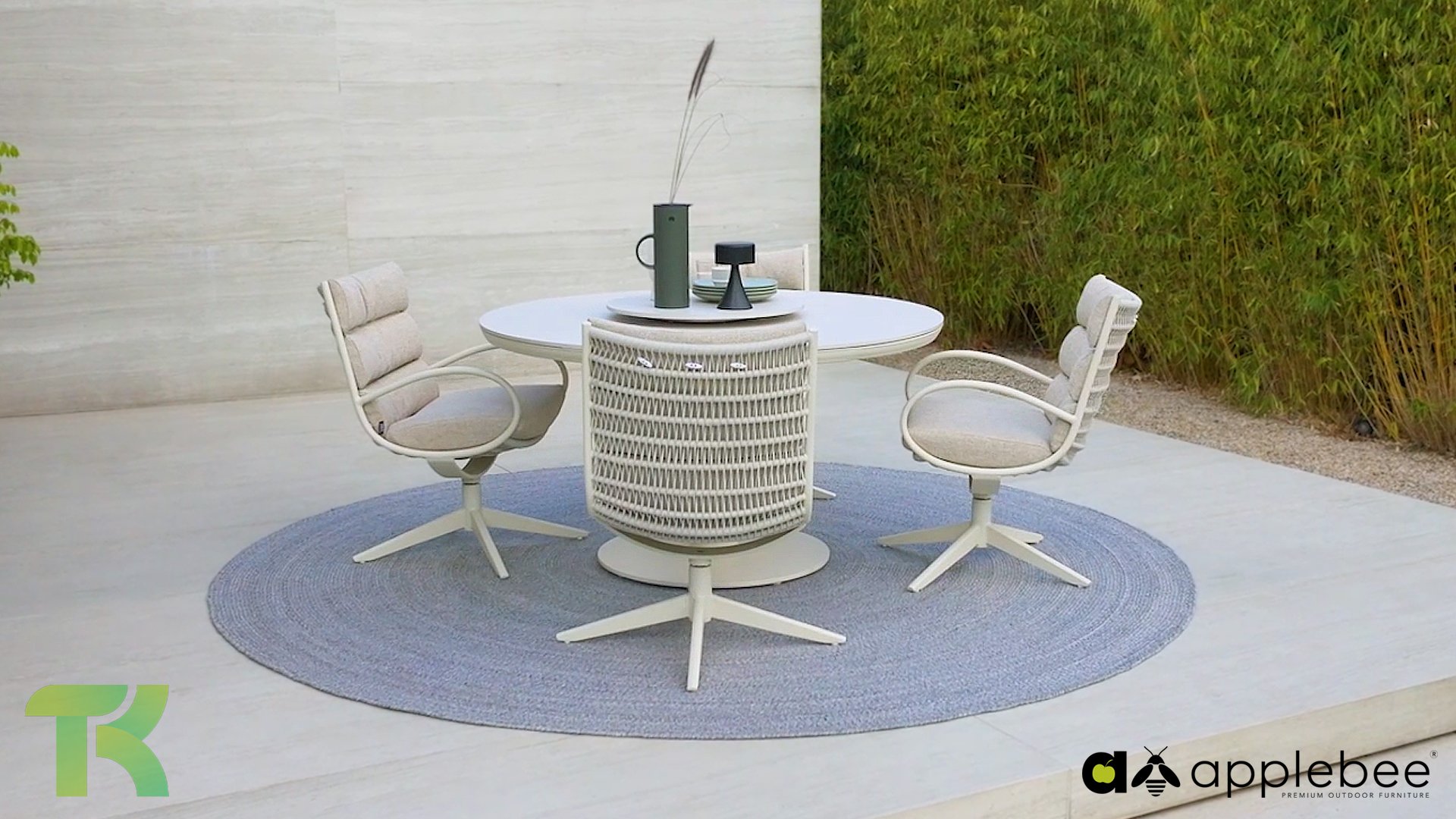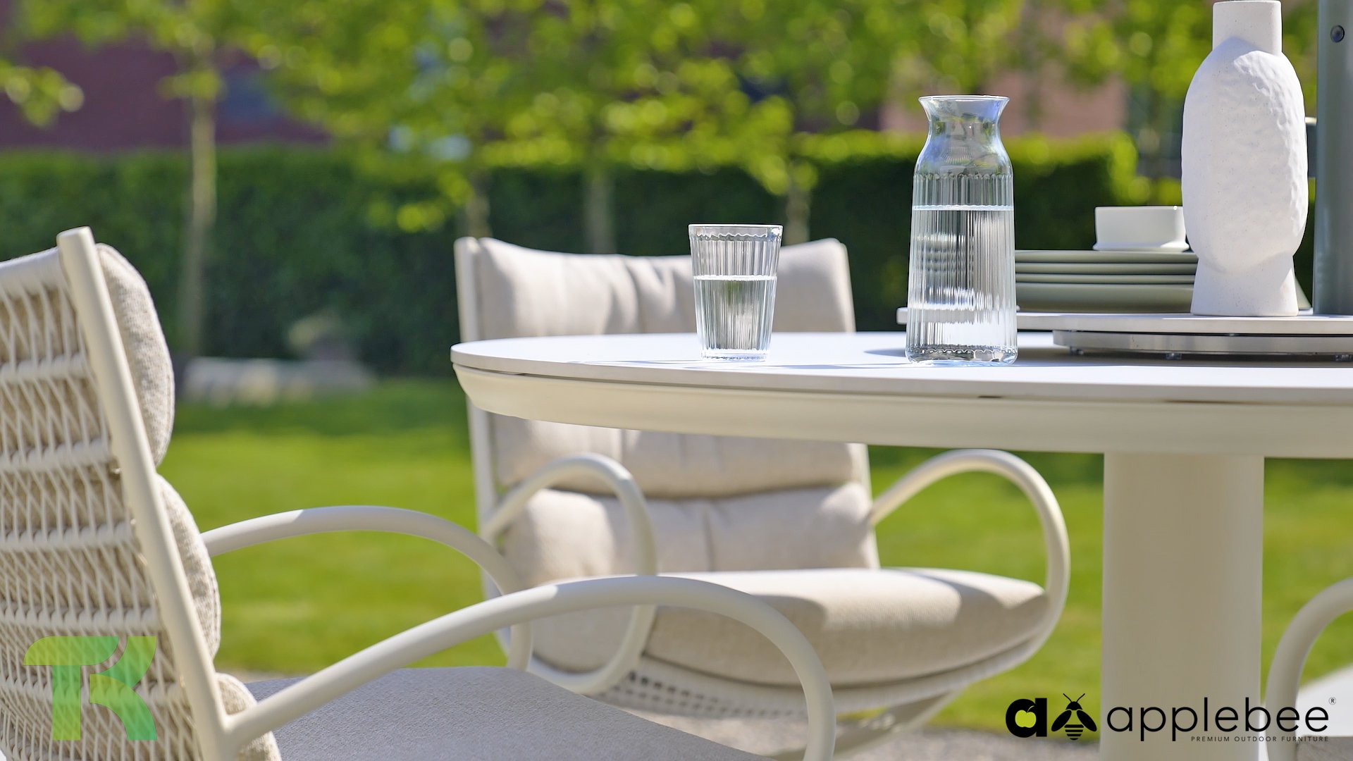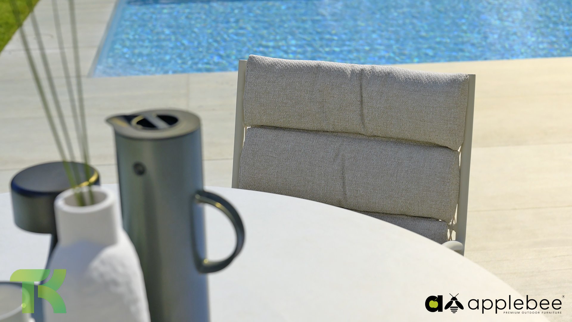 Sie möchten Ihre Terrasse in eine stilvolle Wohlfühloase im Freien verwandeln? Entdecken Sie die Camp Bay Oyster-Serie der Topmarke Apple Bee. Dieses Esszimmer-Set vereint eine elegante, helle Farbpalette mit durchdachter Funktionalität und bietet Ihnen so unvergleichlichen Komfort an langen Sommerabenden.