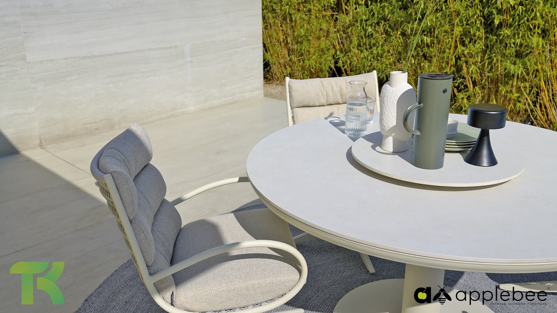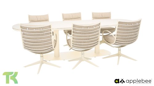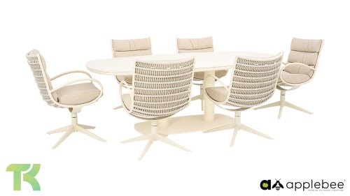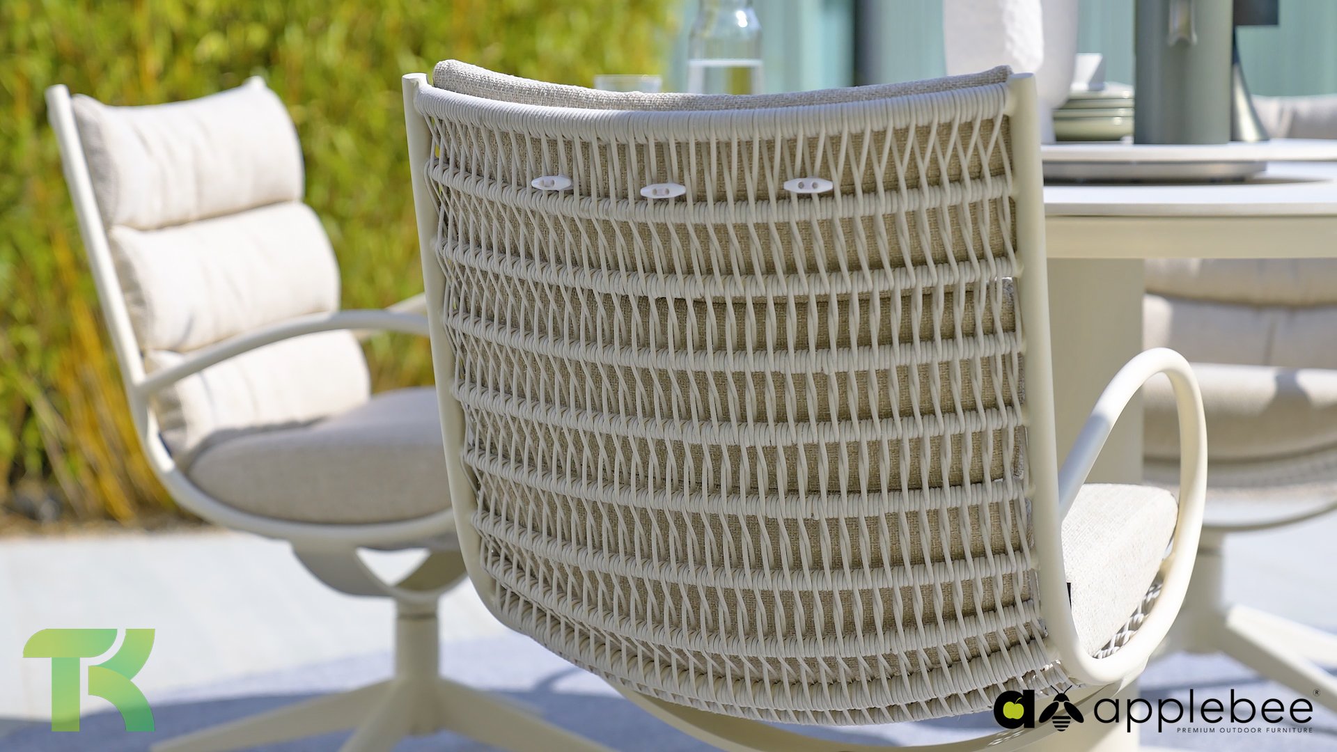 Sie möchten Ihre Terrasse in eine stilvolle Wohlfühloase im Freien verwandeln? Entdecken Sie die Camp Bay Oyster-Serie der Topmarke Apple Bee. Dieses Esszimmer-Set vereint eine elegante, helle Farbpalette mit durchdachter Funktionalität und bietet Ihnen so unvergleichlichen Komfort an langen Sommerabenden.