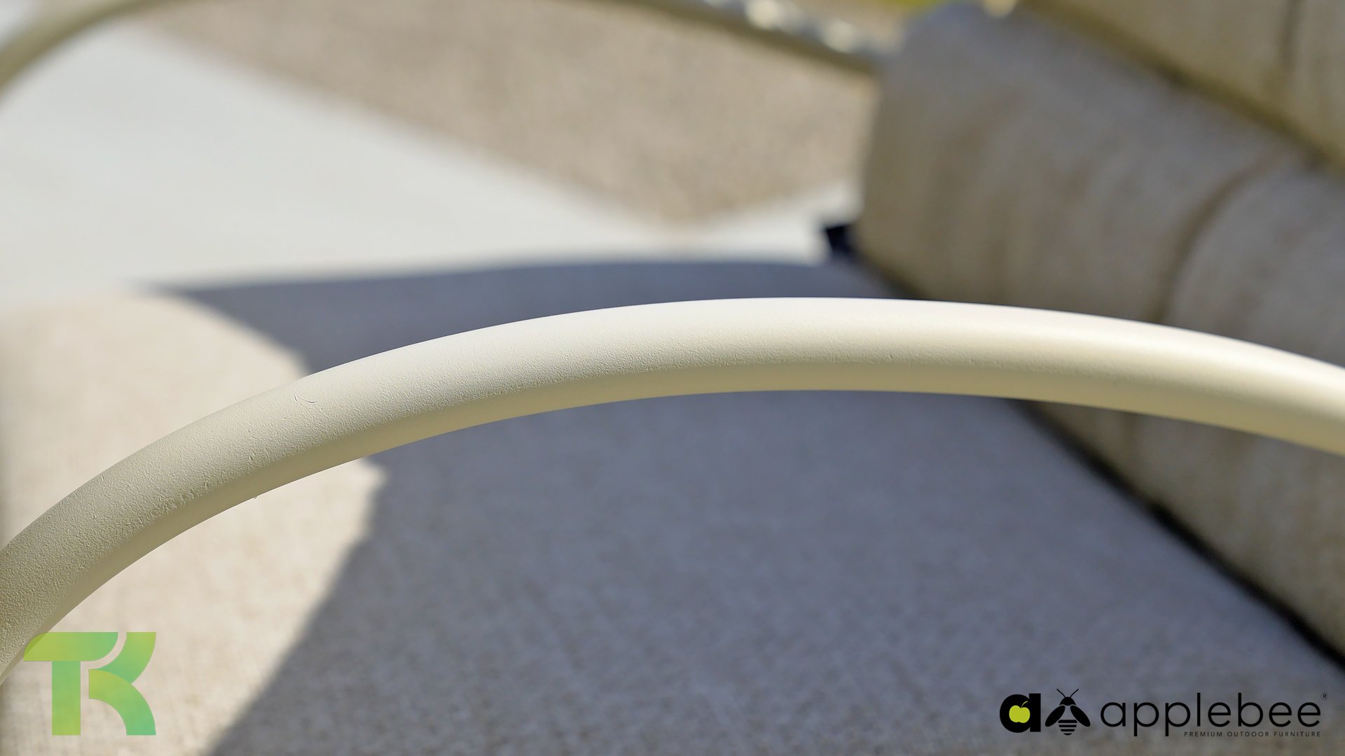 - Stilvolles Gestell: Das Gestell besteht aus hochwertigem, pulverbeschichtetem Aluminium in elegantem Oyster-Ton. Es ist nicht nur robust und leicht, sondern auch pflegeleicht.