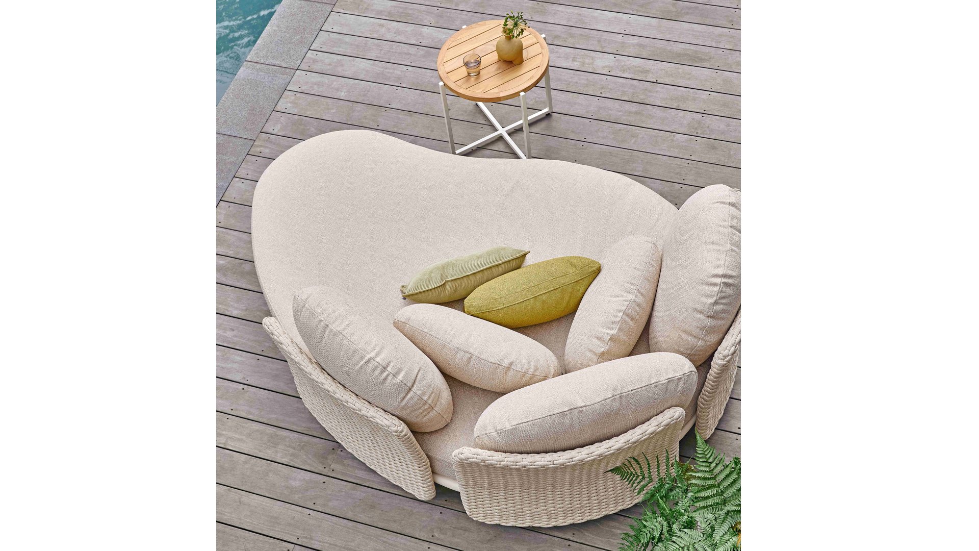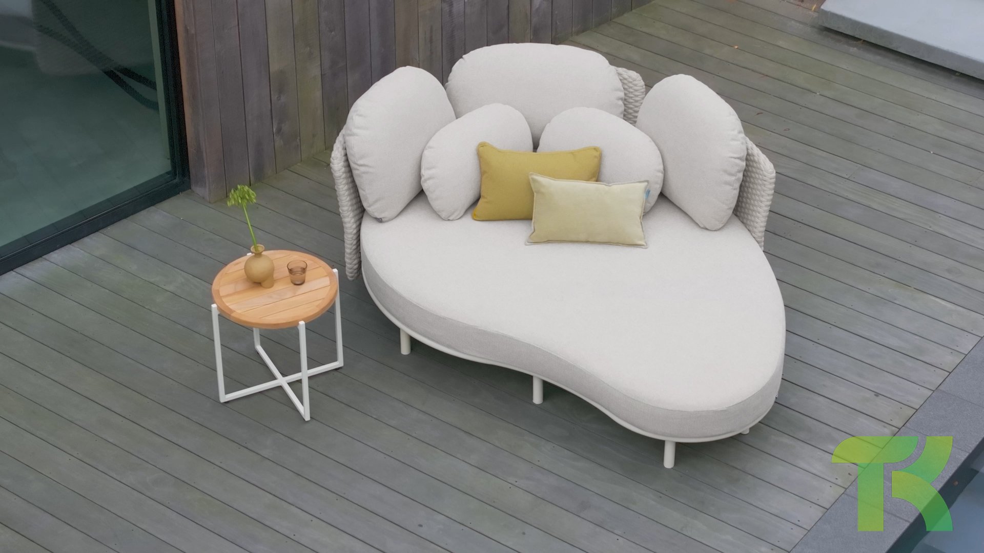 Das Chill Out Daybed der Marke Apple Bee ist eine stilvolle und luxuriöse Wahl für zwei Personen, die ultimativen Komfort und ein raffiniertes Aussehen in ihrem Außenbereich suchen. Dieses Daybed hat eine organische Form, die für ein fließendes Erscheinungsbild sorgt und perfekt zu modernen Garten- und Terrassenumgebungen passt. Die geschwungenen Linien des Designs sorgen nicht nur für visuellen Reiz, sondern tragen auch zu einer bequemen, entspannten Erfahrung bei.