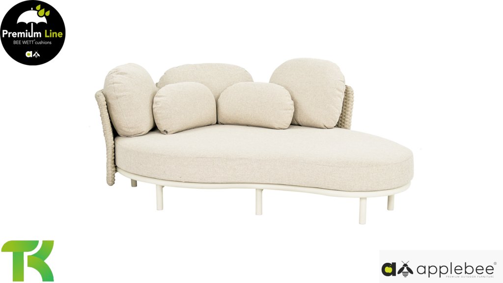 Beim Chill Out Daybed werden fünf Kissen geliefert, die zusätzlichen Komfort und ein luxuriöses Erscheinungsbild bieten. Mit seinem innovativen Design, hochwertigen Materialien und der Qualitätsmarke Apple Bee ist das Chill Out Daybed die ideale Wahl für alle, die Stil und Komfort in Gartenmöbeln suchen.