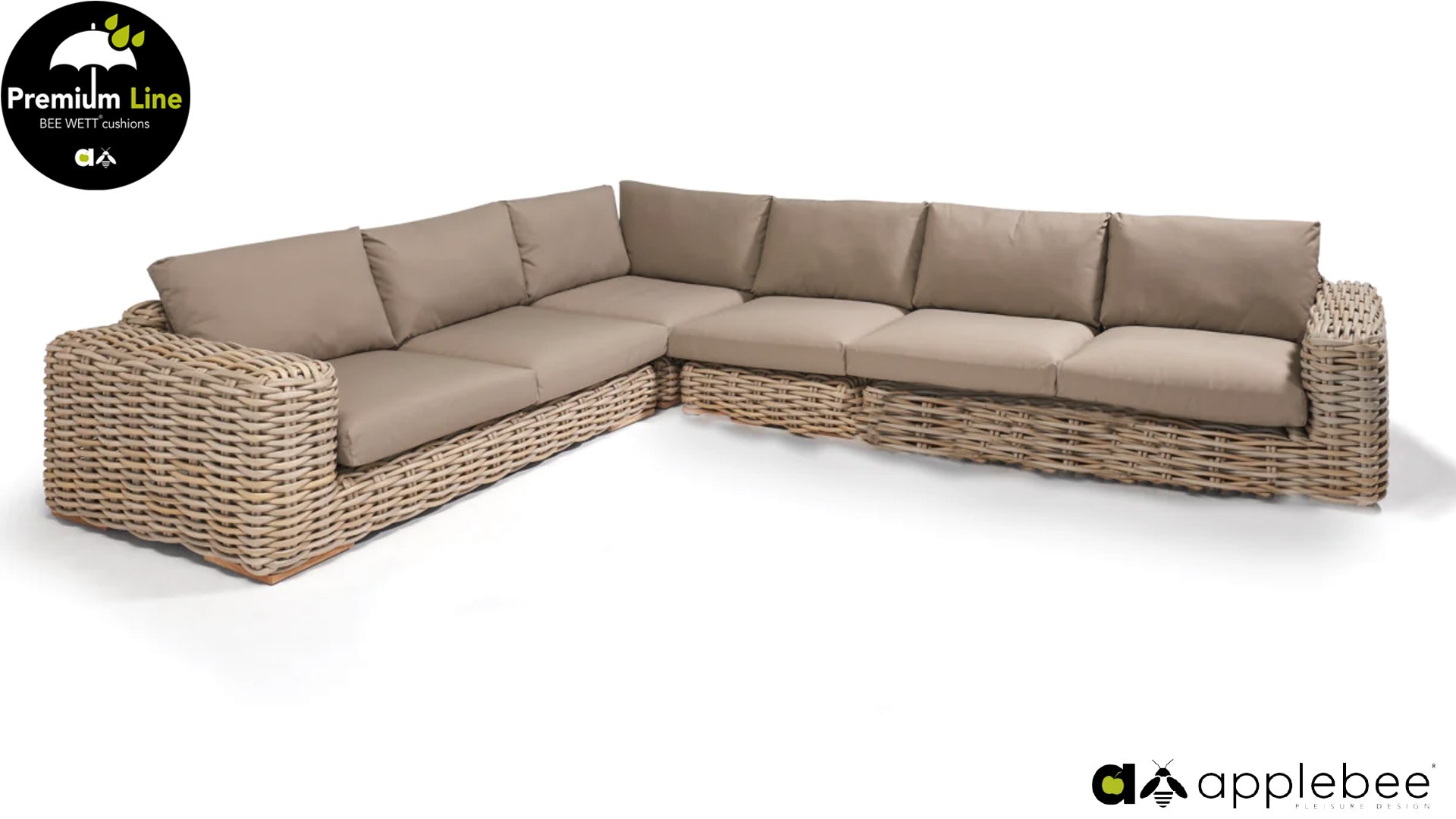 Daraus ergibt sich eine völlig neue, angesagte und robuste Optik, wodurch das Geflecht alles andere als altbacken wirkt. Eher zeitlos! Besonders dicke Kissen in einer luxuriösen, weichen Ausführung vervollständigen das Set. In der Premium-Ausführung verfügen die Kissen über die Bee-Wett®- Technologie, die dafür sorgt, dass die Kissen nach starkem Regen schnell trocknen.