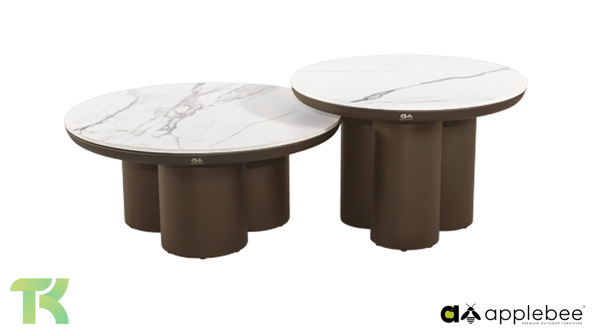 Entdecken Sie das Apple Bee Tonga Kaffeetisch-Set – die perfekte Kombination aus robustem Design und modernem Luxus. Dieses Set, bestehend aus zwei Tischen (Ø80x36cm und Ø60x44cm), verleiht jedem Wohnbereich Tiefe und Dynamik. Die hochwertigen Tischplatten aus Sinterstein sind nicht nur schön, sondern auch langlebig, kratzfest und witterungsbeständig. Die Tische stehen auf einem stabilen, pulverbeschichteten Aluminiumgestell.