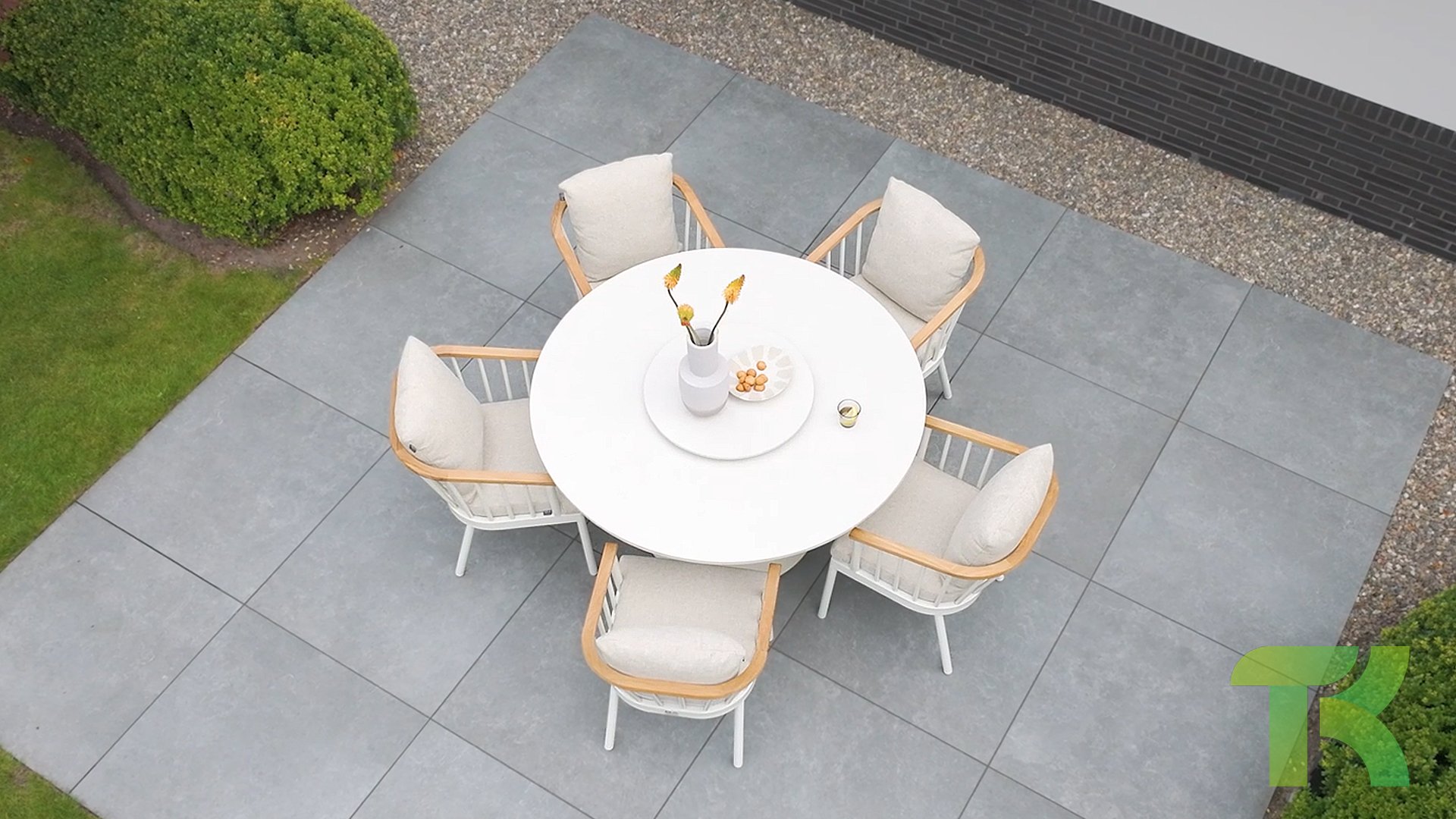 Aluminium ist sehr wartungsfreundlich und leicht. Diese praktischen Möbel sind leicht zu reinigen. Unser Aluminium mit einer festen Pulverbeschichtung ist witterungsbeständig und UV-beständig. Aluminium ist nicht rostanfällig, zeitlos und stilvoll.
