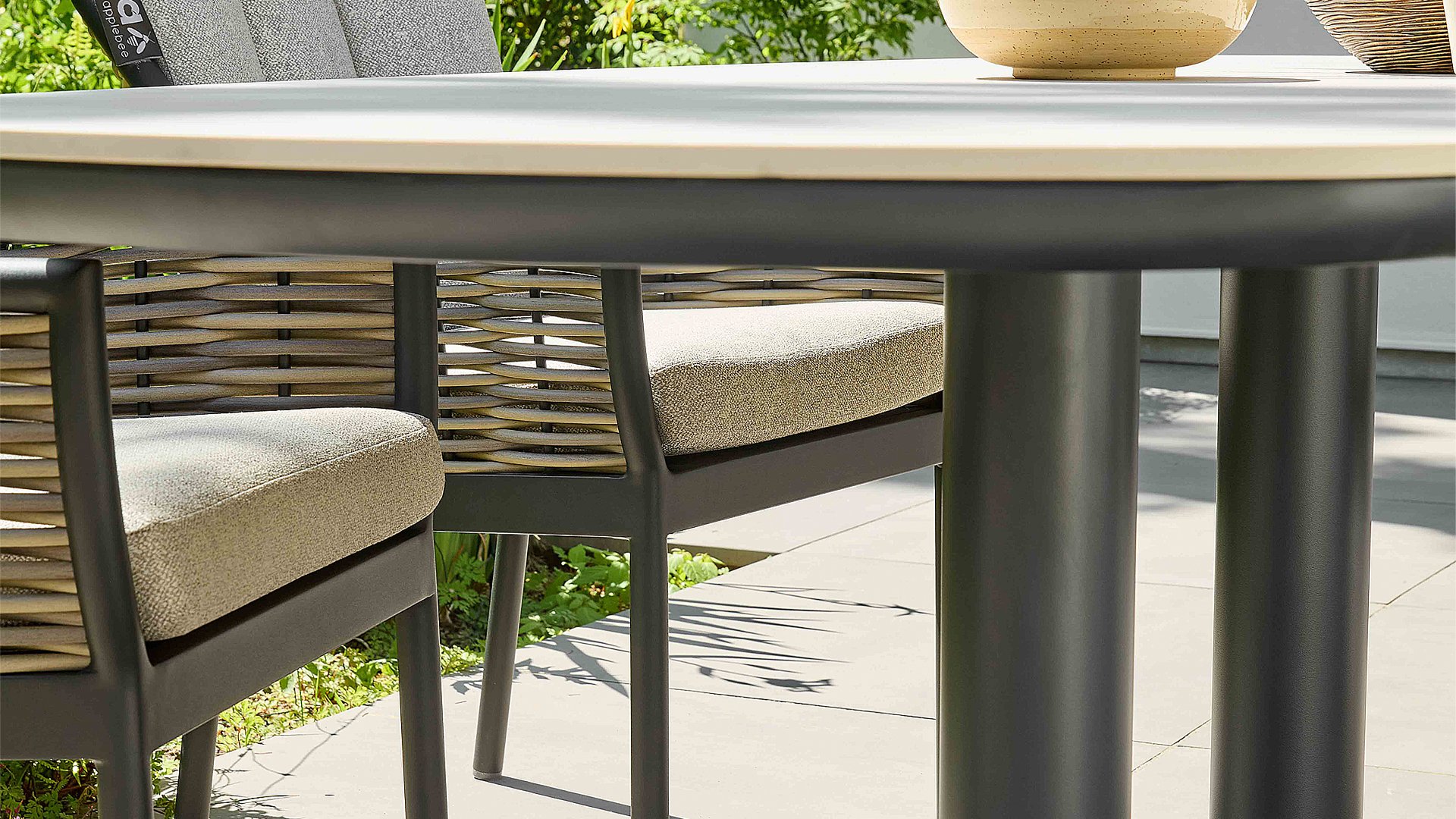 Der Melville 220cm ist in zwei Farben erhältlich: Black und Oyster. Er lädt zum gemeinsamen Verweilen und Genießen ein – mit der Gewissheit erstklassiger Gartenmöbelqualität.