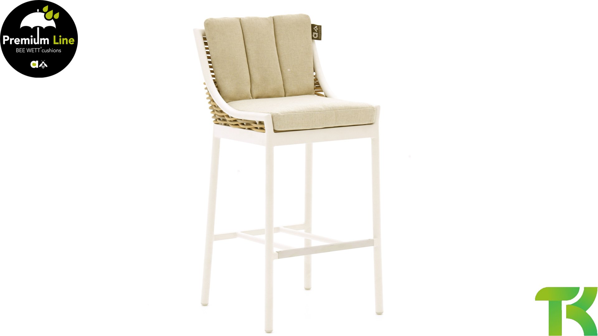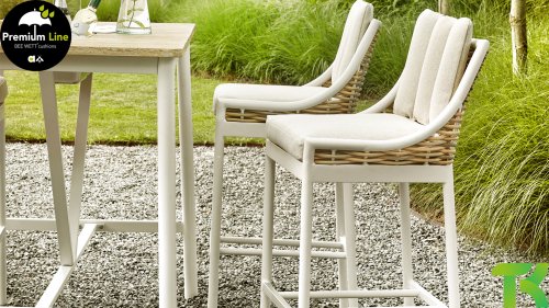 Die Milou-Barset ist von der Marke AppleBee. Der Gartensessel hat ein modernes Aussehen, da hier Weidengeflecht verwendet wurde. Der AppleBee Milou Barhocker hat ein stabiles, pulverbeschichtetes Gestell in Oyster. Das Gestell ist mit einem Weidengeflecht in Willow-Farbe veredelt. Das Geflecht besteht aus Allwettermaterial und kann das ganze Jahr über draußen stehen.