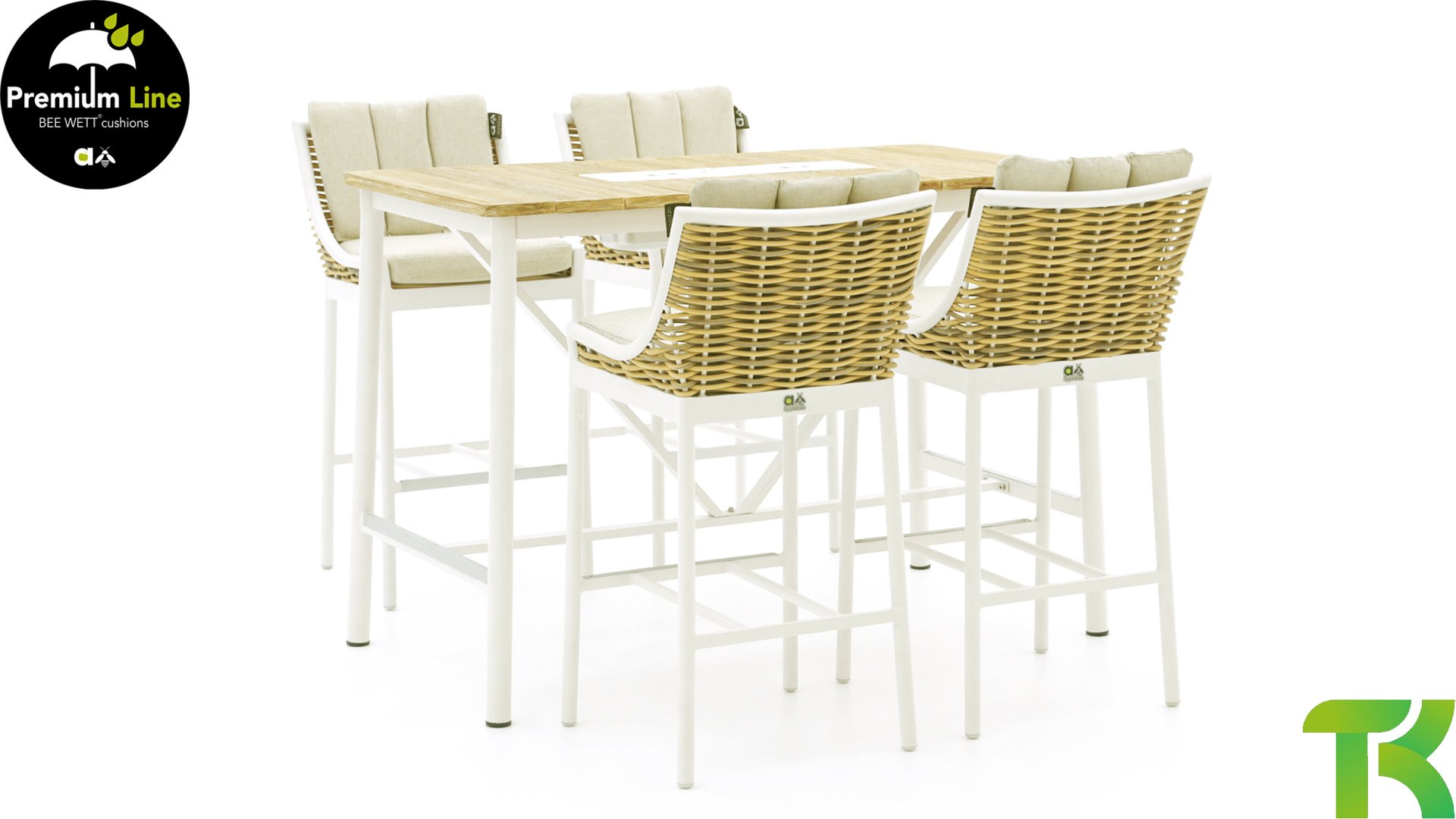 Das moderne Milou-Barset lässt sich hervorragend mit dem Milou Bartisch kombinieren. Der Milou Teak ist ein Tisch mit einem Aluminiumgestell, aber mit einer White Wash Teak-Tischplatte. Das raffinierte Design dieses Tisches hat ein Aluminiumgestell, das subtil zur Tischplatte übergeht. Sehen Sie hier die Kombination von Milou Barhocker mit dem Milou Bartisch: Applebee Milou Barset 7-teilig Nr. 01.