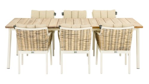 Der Mädchenname Milou bedeutet sanft und freundlich. Das Rattan der Apple Bee Milou Oyster Dining erinnert an Weide. Es wirkt natürlich und bietet gleichzeitig die gewohnte, robuste Biculair®-Qualität für den Außenbereich, die Sie von Apple Bee erwarten. Das Rattan wird von einem Oyster, pulverbeschichteten Rahmen mit geschwungenen Linien eingefasst, der der Milou Terrassengruppe ihren schicken, modernen Look verleiht.