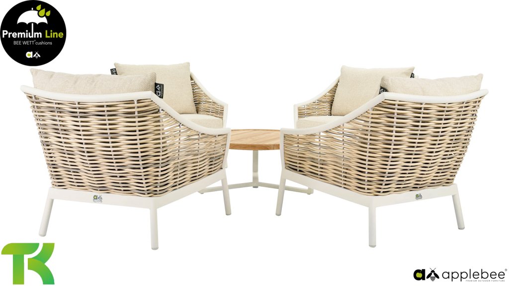 Apple Bee zeichnet sich durch die Verwendung des speziellen Biculair®-Geflechts aus, das ursprünglich für den professionellen Einsatz im Gastgewerbe entwickelt wurde. Dieses Biculair®-Geflecht ist eine naturgetreue und nachhaltige Alternative zu Rattan. Die äußerst strapazierfähige synthetische Rattanfaser (HDPE) ist absolut wetterfest, farbecht, recycelbar und somit eine umweltfreundliche Wahl. Aussehen und Funktionalität der Möbel bleiben von den europäischen Witterungsbedingungen unbeeinträchtigt, und die Farben behalten ihre natürliche Leuchtkraft. Die überlegene Qualität dieses Geflechts, bestätigt von der Niederländischen Organisation für Angewandte Naturwissenschaftliche Forschung (TNO), zeigt sich deutlich im Vergleich zu anderen vergleichbaren Materialien.
