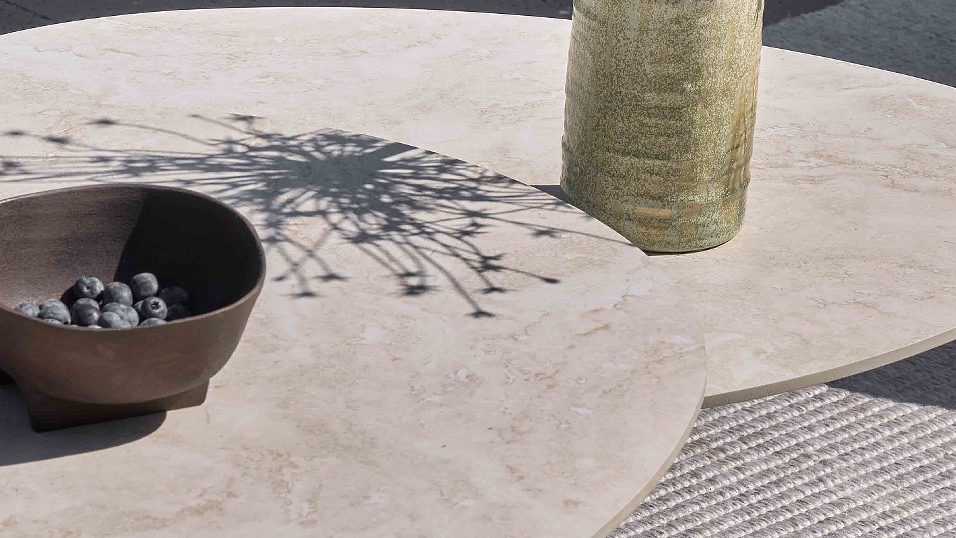 Die robusten Tischplatten aus gesintertem Stein in Cremeoptik bestechen durch ihre Marmoroptik und sind kratz- sowie witterungsbeständig. Das elegante, pulverbeschichtete Aluminiumgestell ist in den Farben Oyster und Bronze erhältlich und harmoniert perfekt mit dem passenden Pine Key Lounge-Set. Schaffen Sie eine raffinierte, flexible und luxuriöse Atmosphäre in Ihrem Garten!