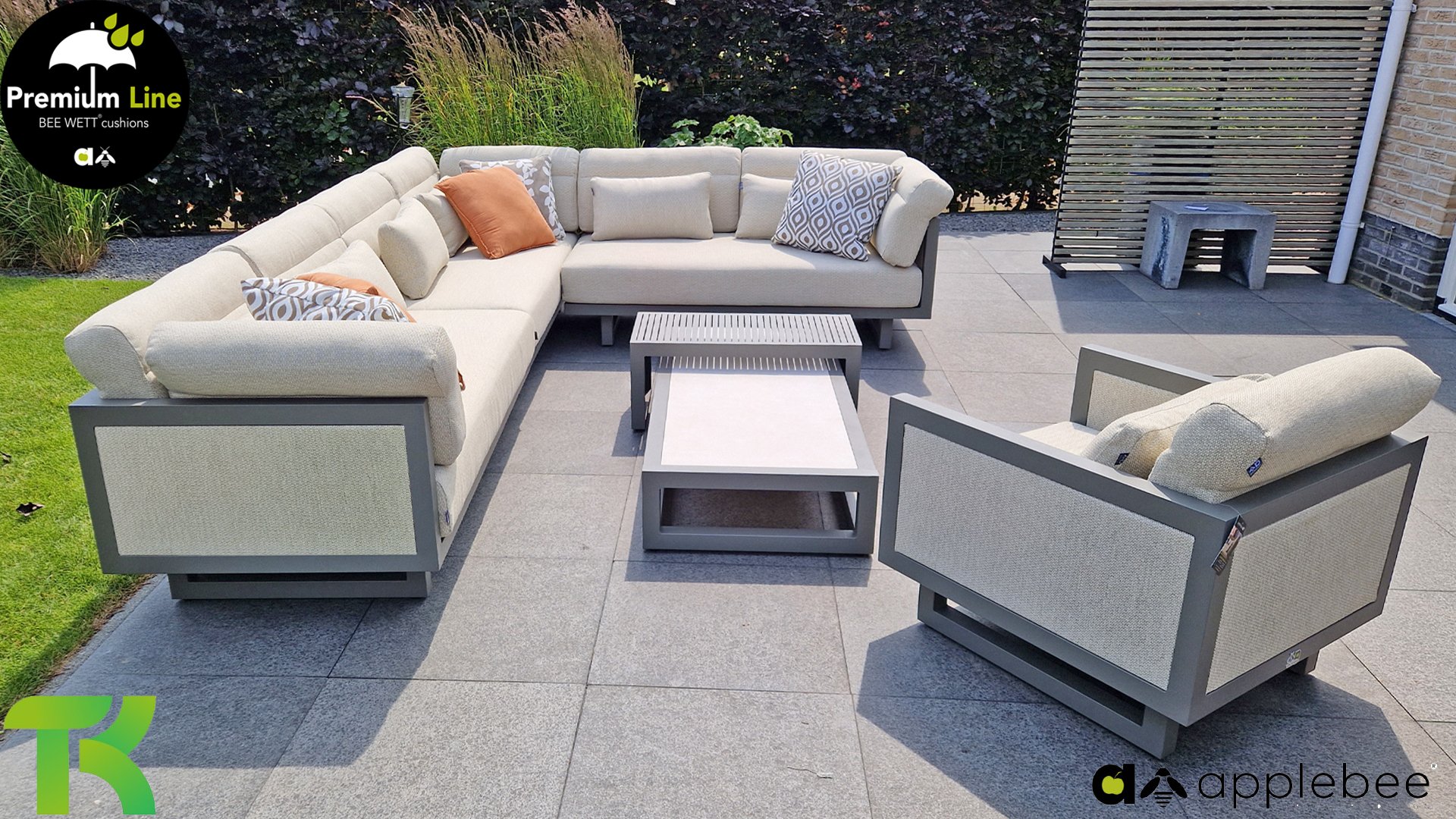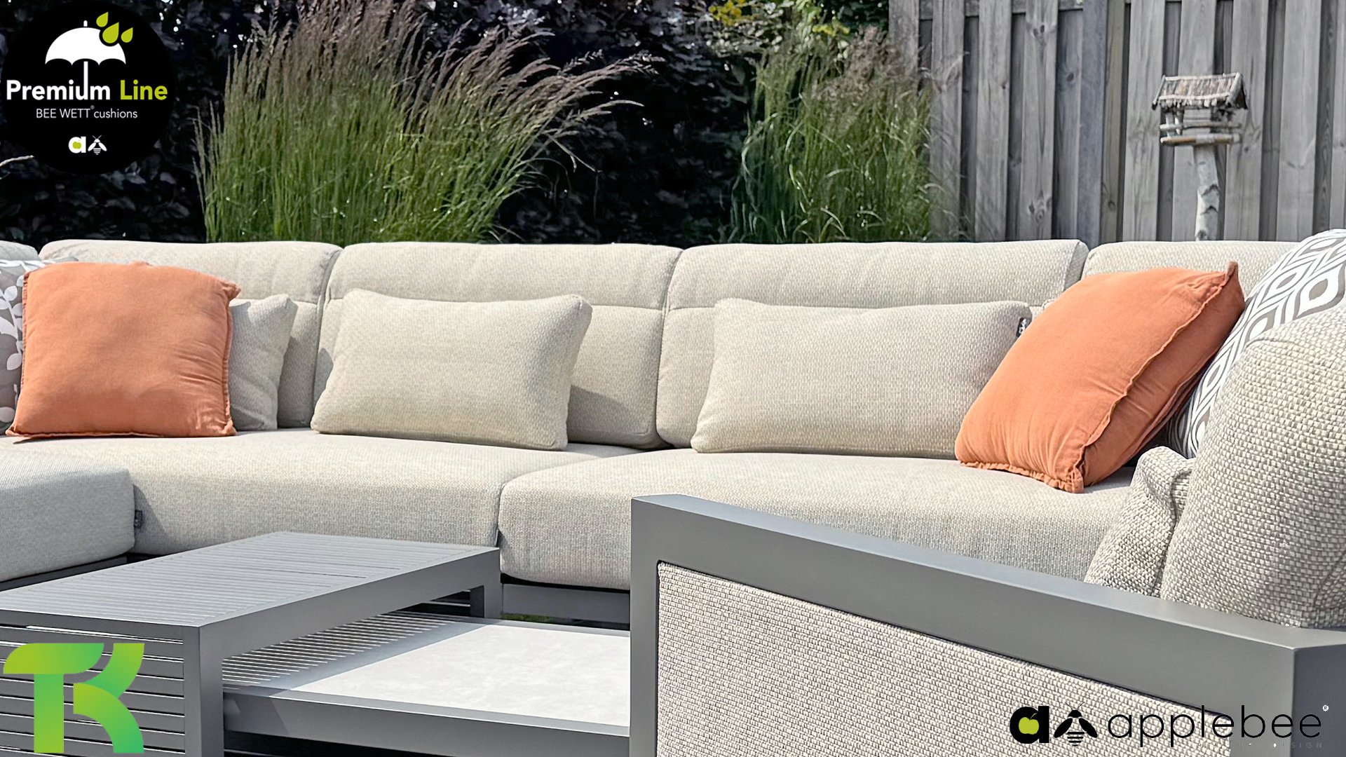 AppleBee Bee Wett sind spezielle wetterfeste Kissen die natürlich draußen liegen bleiben können. Die abnehmbaren Hüllen werden aus den besten möglichen Stoffen hergestellt und sind alle waschbar auf 30°C. Der Stoff ist zusätzlich wasserabstoßend und garantiert UV-beständig. Eine offenes Gewebe an der Unterseite der Kissen sorgt für eine perfekte Drainage. Der Vorteil, dass die Bee Wett Kissen und Polster unglaublich viel schneller trocknen als vergleichbare andere Kissen. Das Stoff hat eine gute Beständigkeit gegen Verfaulen und Stockflecken und darüber hinaus UV-beständig, weich, komfortabel und feuchtigkeitsabstoßend ist. Die Polster sind ausziehbar und waschbar.