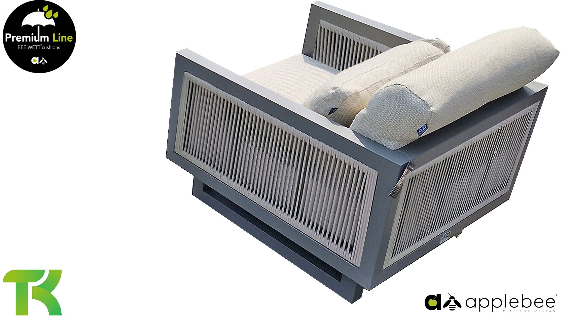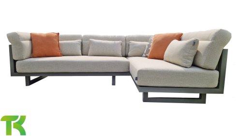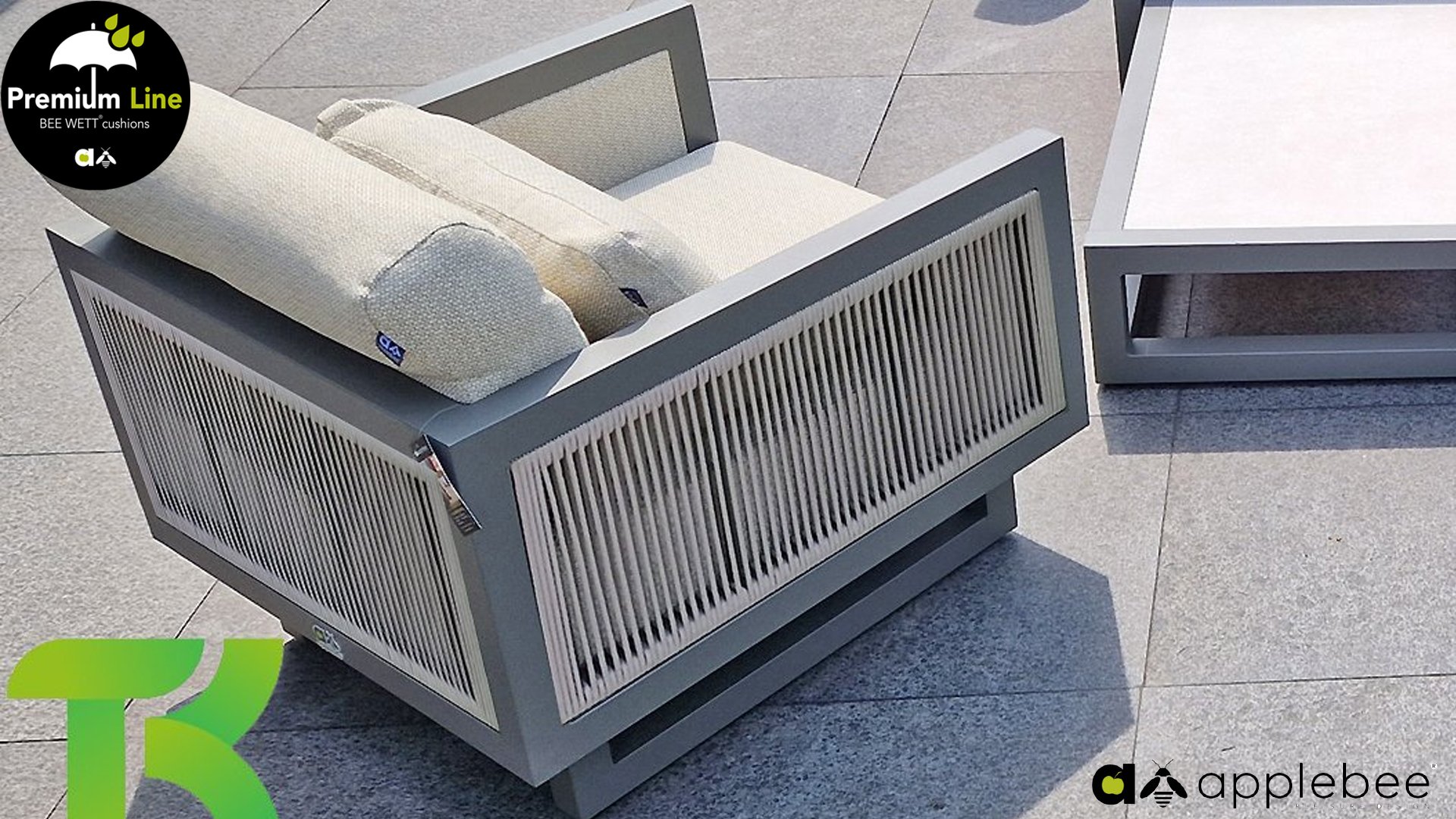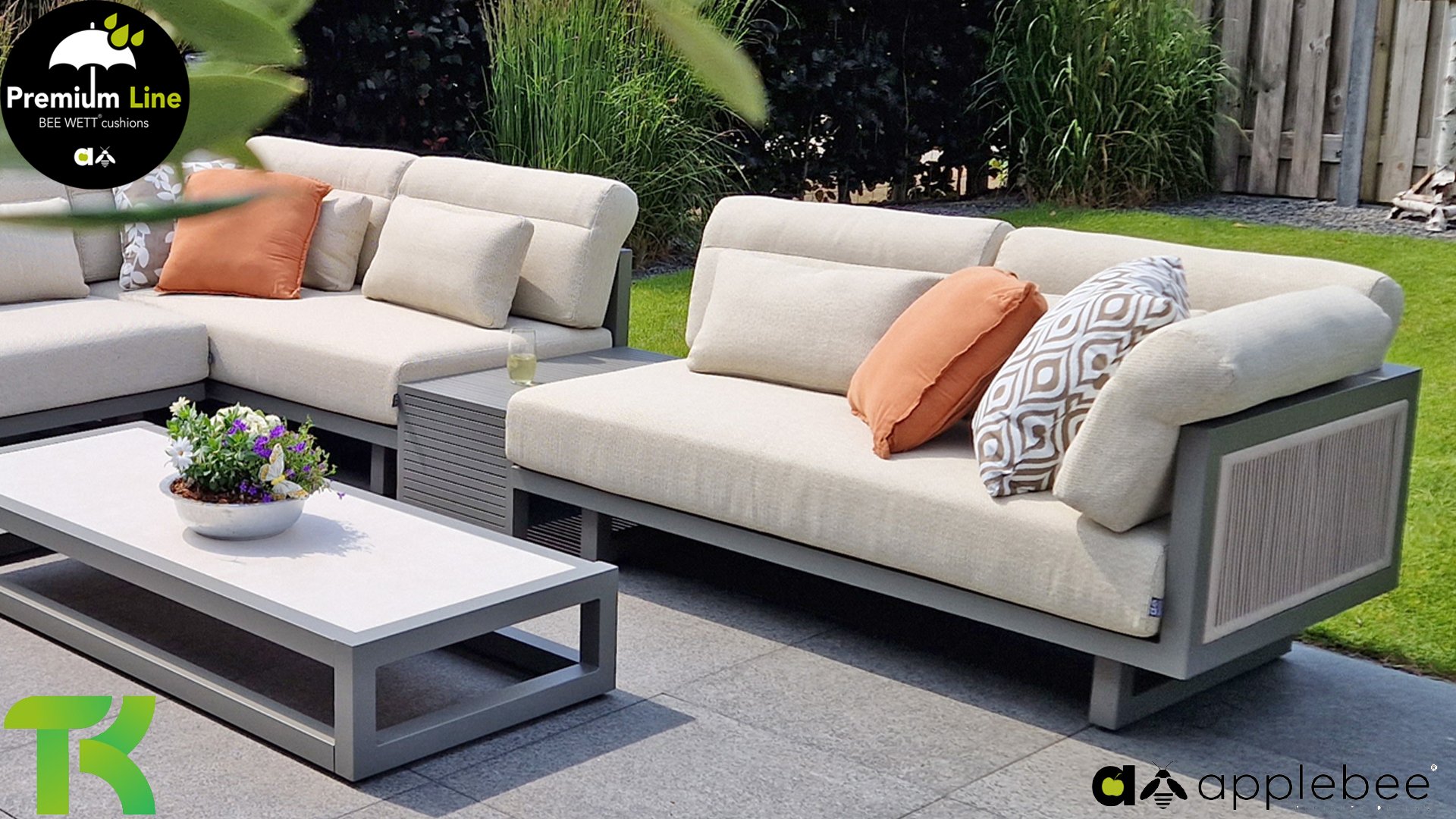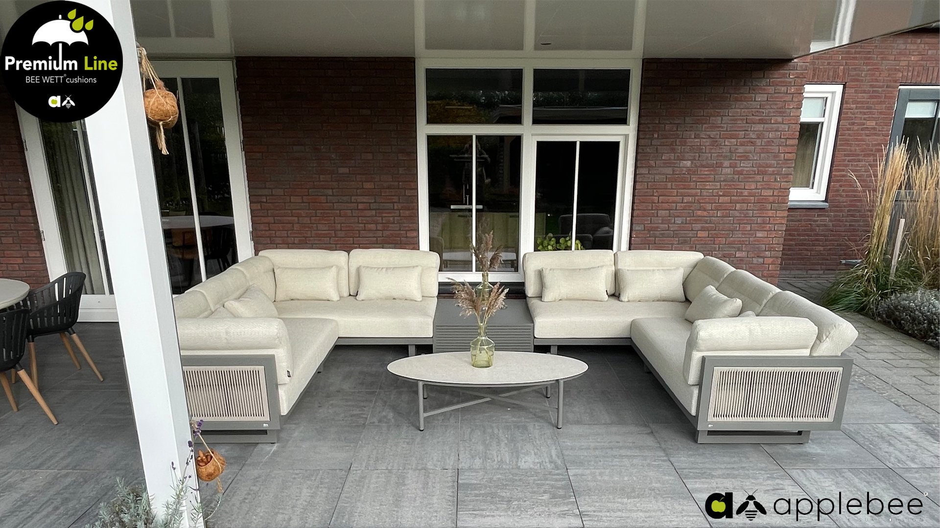 Apple Bee Santorini Lounge Rope: Wenn Sie ein elegantes und kubistisches Lounge-Set mögen, aber keine Kompromisse bei Launen eingehen wollen … schauen Sie hier, das Santorini! Ein schlanker Vierkantrohrrahmen aus Aluminium, pulverbeschichtet in warmem Taupe. Dieses Set ist in zwei Versionen erhältlich. Der Unterschied liegt in den Paneelen in den Armen und im Rücken, die wie ein Gemälde vom Rahmen eingerahmt zu sein scheinen. In der ersten Version ist das Panel mit einem schönen gemischten Seil umwickelt. Dadurch bleibt das Set luftig mit einem zeitgemäßen Look. Die andere Version hat gepolsterte Paneele im gleichen Stoff wie die Kissen. Das verleiht dem Set sofort mehr Klasse und Luxus. Die Arm- und Rückenkissen des Santorini sind etwas Besonderes und biegen sich leicht über die Armlehnen. Sie verleihen den ansonsten klaren Linien einen weichen Touch. Dadurch können Sie sich auch bequem hinlegen. Bequeme Lendenkissen sind im Lieferumfang des Santorini enthalten. So können Sie sich voll und ganz einleben und auch an kühleren Tagen ein gemütliches Plätzchen schaffen.