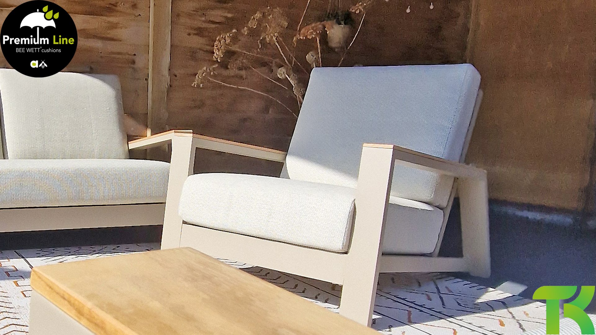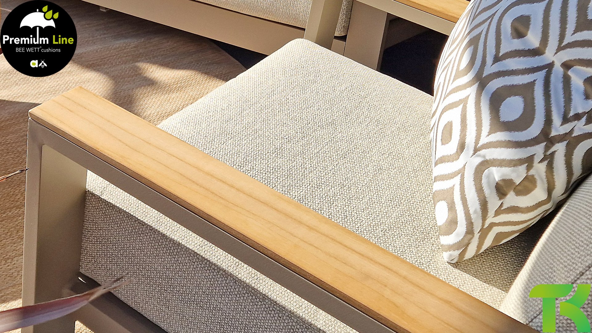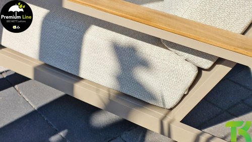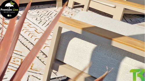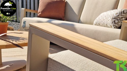 Die Apple Bee Spring Aluminium Latte Kollektion ist minimalistisch und sauber, aber fällt dennoch durch eine besondere Gestaltung auf. Ein strenges diagonales Linienmuster, sorgfältig verarbeitetes Aluminium, pulverbeschichtet in einer schönen Latte Farbe und weiche, komfortable Kissen in sandfarbenem Stoff. Ein Hauch von Teak auf der Lehne rundet das Set ab und verleiht ihm das gewisse Extra-Detail. Mit einer Dekoration in Ihrem eigenen Stil können Sie im Handumdrehen Ihren eigenen Dreh an diesem 'Sonnennest' geben.