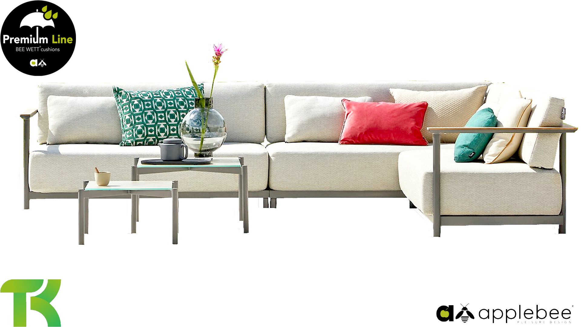AppleBee Bee Wett sind spezielle wetterfeste Kissen die natürlich draußen liegen bleiben können. Die abnehmbaren Hüllen werden aus den besten möglichen Stoffen hergestellt und sind alle waschbar auf 30°C. Der Stoff ist zusätzlich wasserabstoßend  und garantiert UV-beständig. Eine offenes Gewebe an der Unterseite der Kissen sorgt für eine perfekte Drainage. Der Vorteil, dass die Bee Wett Kissen und Polster unglaublich viel schneller trocknen als vergleichbare andere Kissen. Das Stoff hat eine gute Beständigkeit gegen Verfaulen und Stockflecken und darüber hinaus UV-beständig, weich, komfortabel und feuchtigkeitsabstoßend ist. Die Polster sind ausziehbar und waschbar.