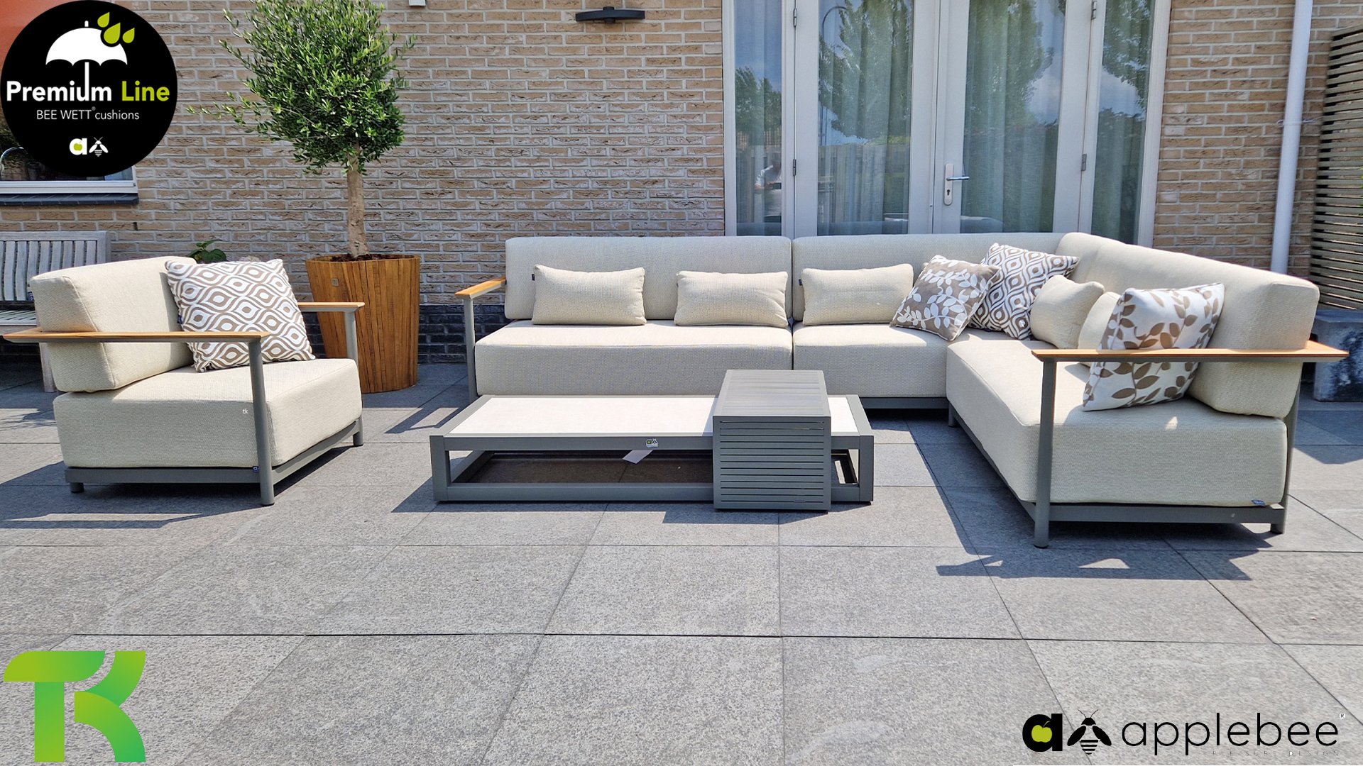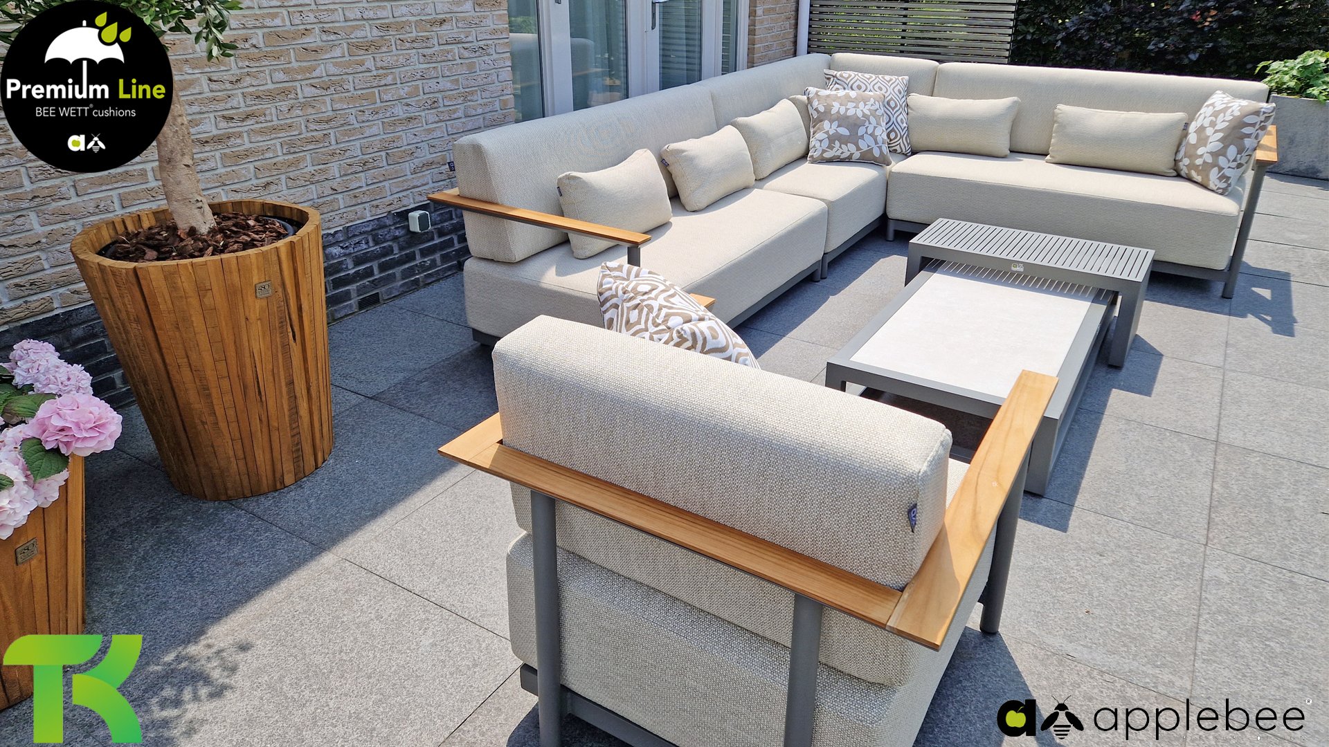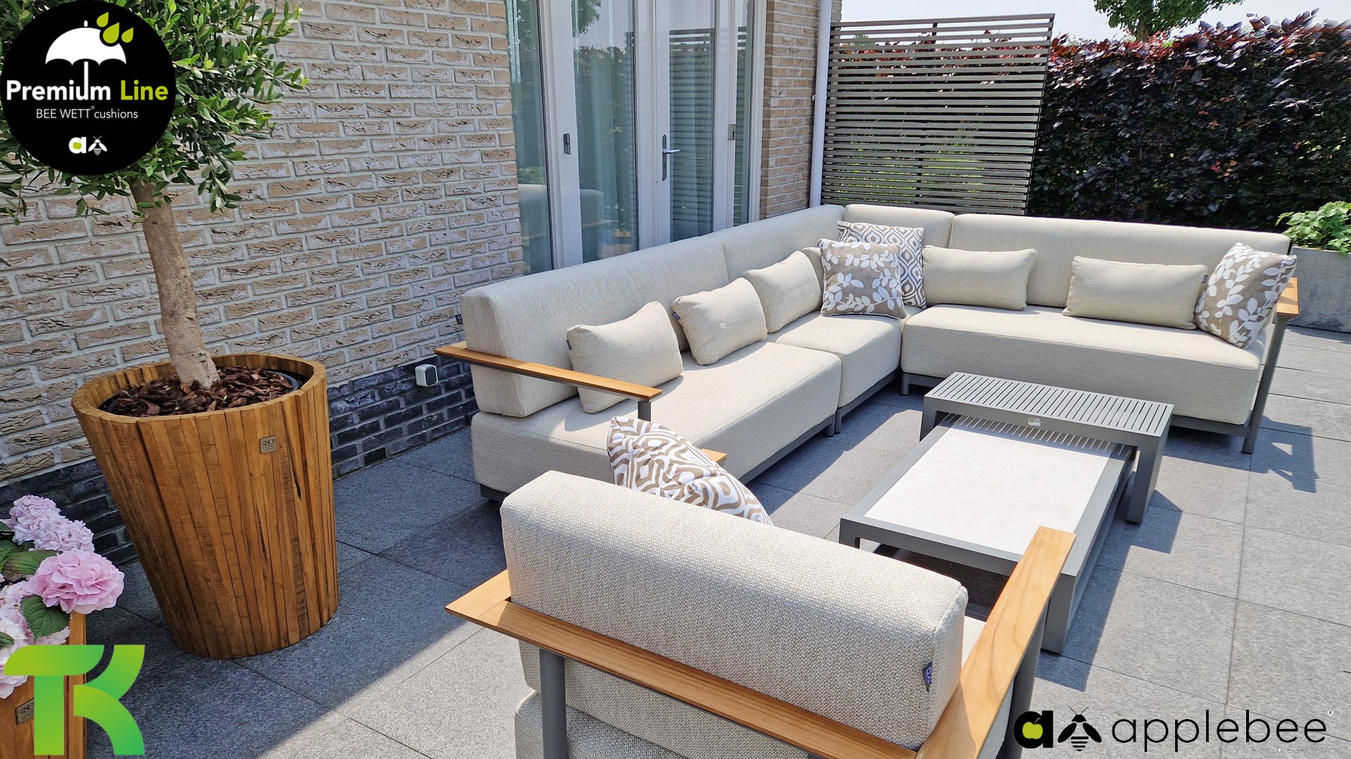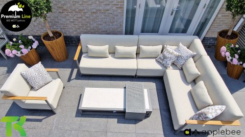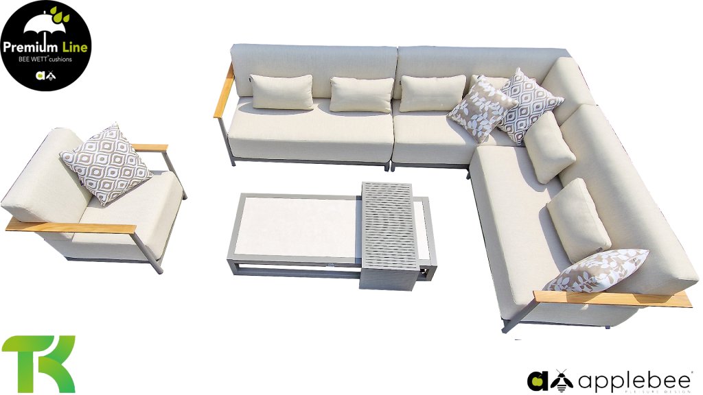 AppleBee Bee Wett sind spezielle wetterfeste Kissen die natürlich draußen liegen bleiben können. Die abnehmbaren Hüllen werden aus den besten möglichen Stoffen hergestellt und sind alle waschbar auf 30°C. Der Stoff ist zusätzlich wasserabstoßend  und garantiert UV-beständig. Eine offenes Gewebe an der Unterseite der Kissen sorgt für eine perfekte Drainage. Der Vorteil, dass die Bee Wett Kissen und Polster unglaublich viel schneller trocknen als vergleichbare andere Kissen. Das Stoff hat eine gute Beständigkeit gegen Verfaulen und Stockflecken und darüber hinaus UV-beständig, weich, komfortabel und feuchtigkeitsabstoßend ist. Die Polster sind ausziehbar und waschbar.
