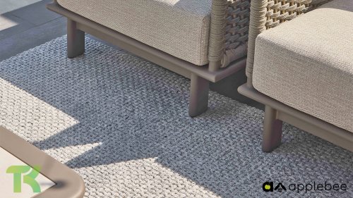 Dieser dicke Teppich ist in offener Webart gefertigt und wirkt dadurch selbst in seiner größten Größe leicht und luftig. Er besteht zu 100 % aus recyceltem PET, hat eine rutschfeste, synthetische Rückseite und ist somit für den Außenbereich geeignet. Zudem ist er wasserdurchlässig. Dank der Pitloom-Technik ist er robuster als handgewebte Teppiche.