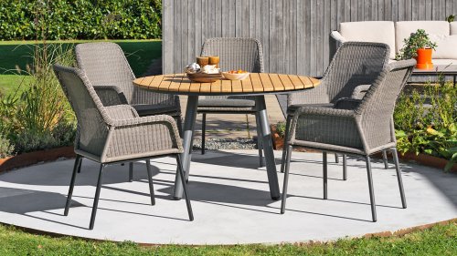 Der Brafab Bam Bo Tisch eignet sich sowohl zum Essen als auch zum Entspannen. Organische runde Formen aus Bambus. Robuste Elemente, die trotz der abgerundeten Details Eleganz ausstrahlen. Brafab weiß, dass das schwedische Klima, ebenso wie das niederländische, alle Arten von Wetter mit Regen und Sonne bieten kann, deshalb steht Nachhaltigkeit immer im Mittelpunkt, wenn ein neues Gartenmöbel in Produktion geht.