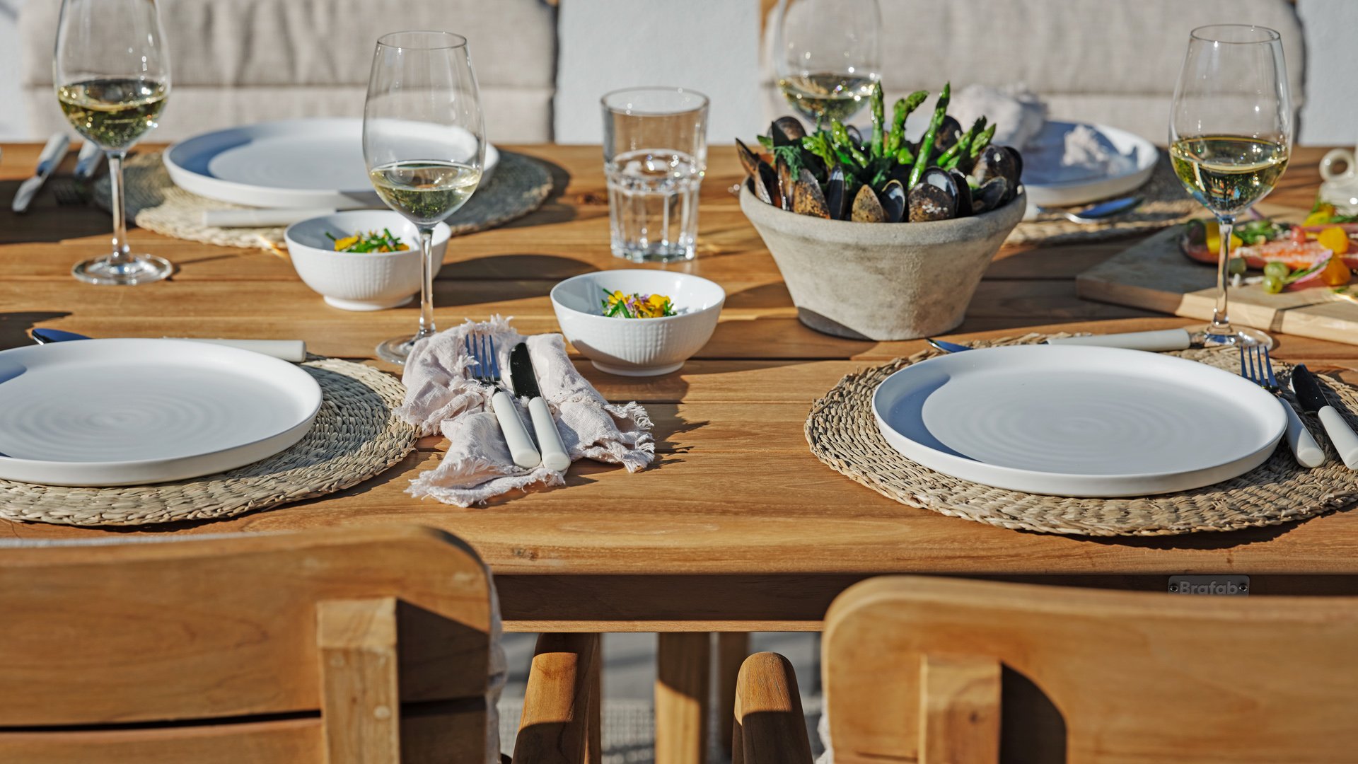 Gartenmöbel aus Teakholz bieten einen atemberaubenden Blick.Teakholz eignet sich besonders gut für den Einsatz im Außenbereich. Es ist resistent gegen Schädlinge und Pilze und widerstandsfähig gegen Sonne, Regen und Schnee. Mit der Zeit entwickelt das Teakholz eine silbergraue Patina. Gartenmöbel aus Teakholz bieten einen atemberaubenden Blick. Darüber hinaus ist es starkes Material und erfordert nur wenig Wartung. Wer die ursprüngliche Farbe des Teakholzes bevorzugt, kann durch regelmäßiges benutzen unser Pflegemittel ganz einfach das Vergrauen des Holzes verhindern.Darüber hinaus können Sie Teak mit grüner Seife reinigen. Durch Temperaturunterschiede und durch den Wechsel von Feuchtigkeit und Trockenheit können kleine Haarrisse entstehen. Es ist üblich, dass Man in dies Unvollkommenheiten findet, diese Unregelmäßigkeiten sind kennzeichnend für dieses Produkt. Diese Unregelmäßigkeiten können nie einen Anlass zu Reklamation, Garantie oder Claim formen. Es betrifft eine Unterschrift von Originalität! Wir gewähren Garantie auf alle Produktions- und Konstruktionsfehler. Die Wirkung von Teakholz ist nicht enthalten. Wenn Sie sich für Teakholz entscheiden, erwarten wir, dass Sie diese Eigenschaften zu schätzen wissen. Eventuell auftretende Haarrisse, Äste im Teakholz und raue Oberflächen im Laufe der Zeit fallen nicht unter unsere Garantie. Diese Eigenschaften verleihen dem Teakholz seinen eigenen Charakter und sind Teil der Optik. Seien Sie vorsichtig mit einem Blumentopf oder einer Vase auf Ihrem Gartentisch aus Teakholz, da dies zu hartnäckigen Kreisen oder Farbunterschieden führen kann.