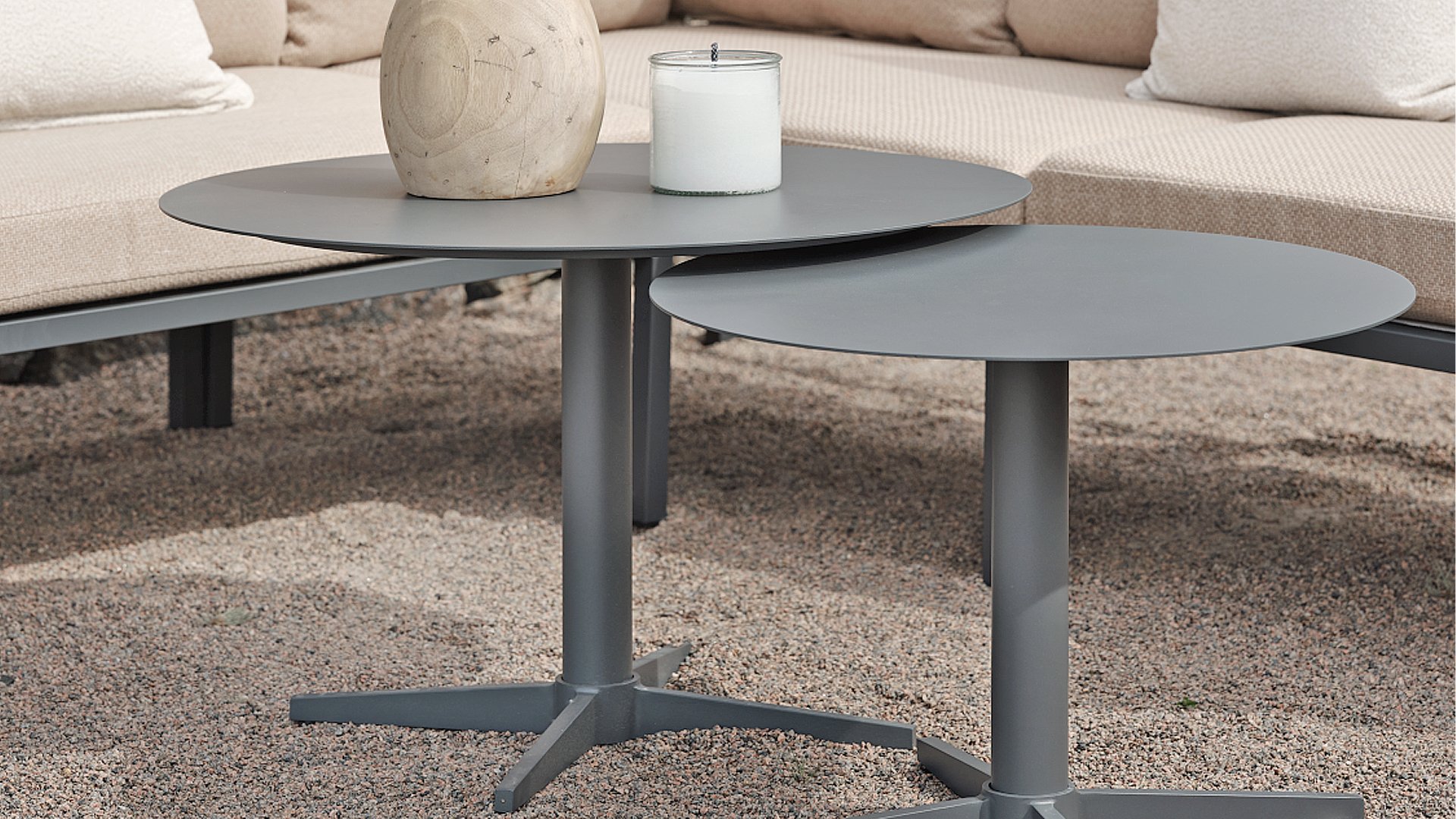 Der runde Brafab MILL Couchtisch ist in zwei Größen erhältlich: Large und Medium. Erhältlich in verschiedenen Farben: Anthrazit, Khaki und Peach. Platzieren Sie sie allein oder zu zweit - sie können sich teilweise überlappen aufgrund des geringen Höhenunterschieds.