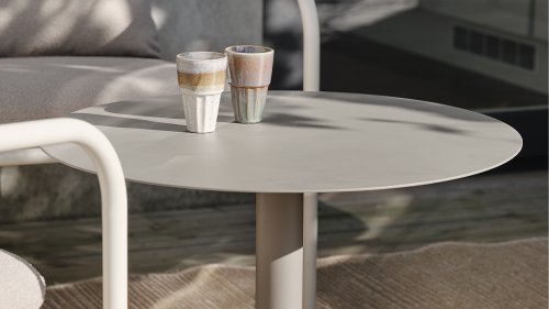 Der runde Brafab MILL Couchtisch ist in zwei Größen erhältlich: Large und Medium. Erhältlich in verschiedenen Farben: Antracite, Khaki und Peach. Platzieren Sie sie alleine oder zu zweit - sie können sich durch den geringen Höhenunterschied teilweise überlappen.