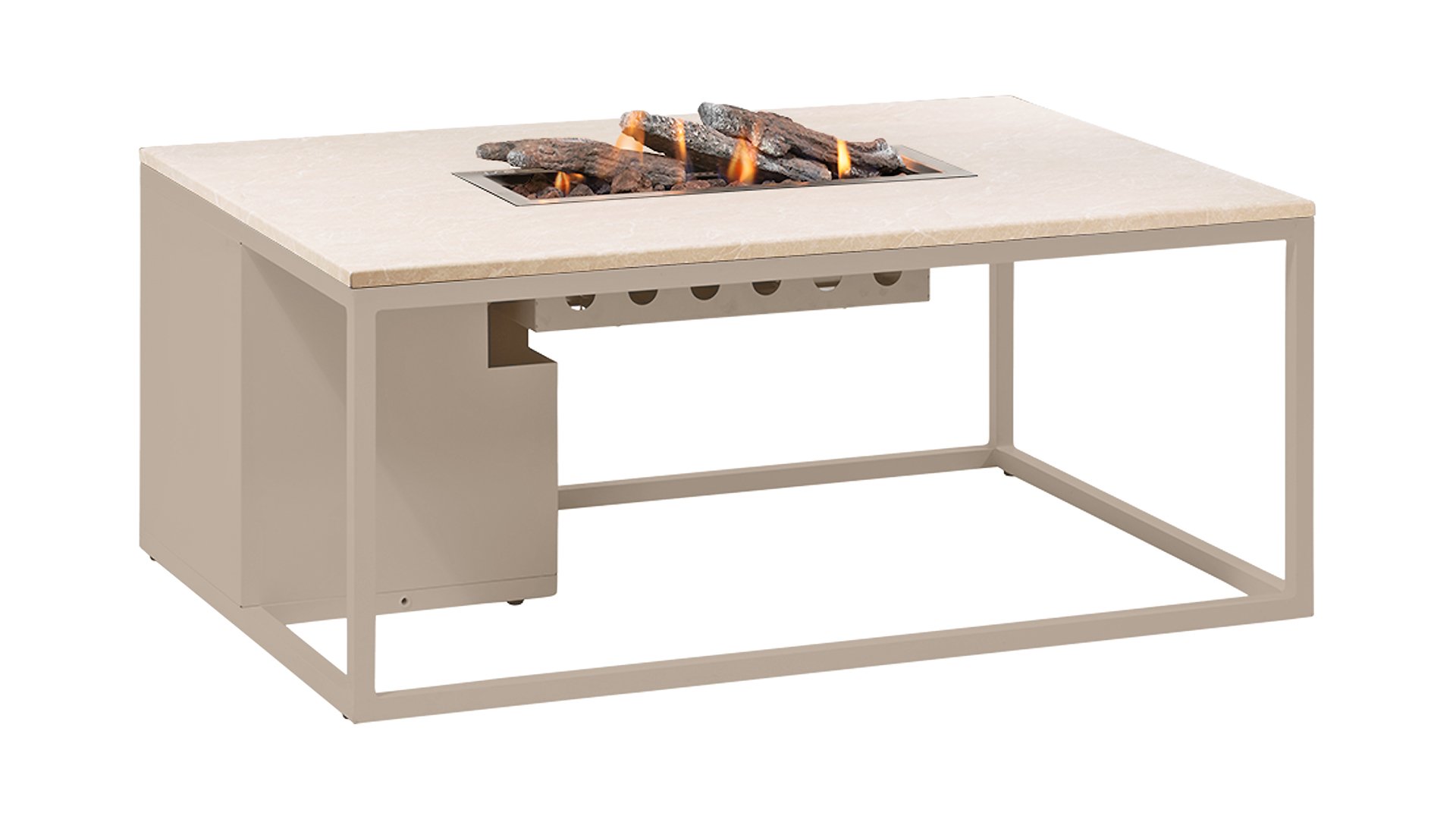 Der Cosiloft 120 Lounge-Tisch kann problemlos mit einer großen Auswahl an Loungesets kombiniert werden. Der Cosiloft 120 Lounge-Tisch verfügt über einen geraden Brenner, der ausreichend Platz bietet, um all Ihre Freunde und Familie zu einem Getränk einzuladen. Der Cosiloft ist 80 cm breit und 120 cm lang. Dieser Feuertisch hat, wie der Cosiloft 100, einen schönen, offenen Aluminiumrahmen, der mit einer der drei Tischplatten kombiniert werden kann: Teak, Schwarz und Grau. Der Rahmen ist in zwei Farben erhältlich: Weiß für einen modernen Look oder Schwarz für einen industriellen Stil. Trotz seiner schönen Lounge-Tisch-Höhe passt sogar eine 5 kg Gasflasche in den Cosiloft 120. Diese ist gut in das schlichte Design des Cosiloft-Tisches integriert. Zu jedem Cosiloft wird eine Abdeckplatte für den Brenner mitgeliefert. Wenn der Kamin nicht eingeschaltet ist, können Sie dennoch die gesamte Tischoberfläche nutzen.