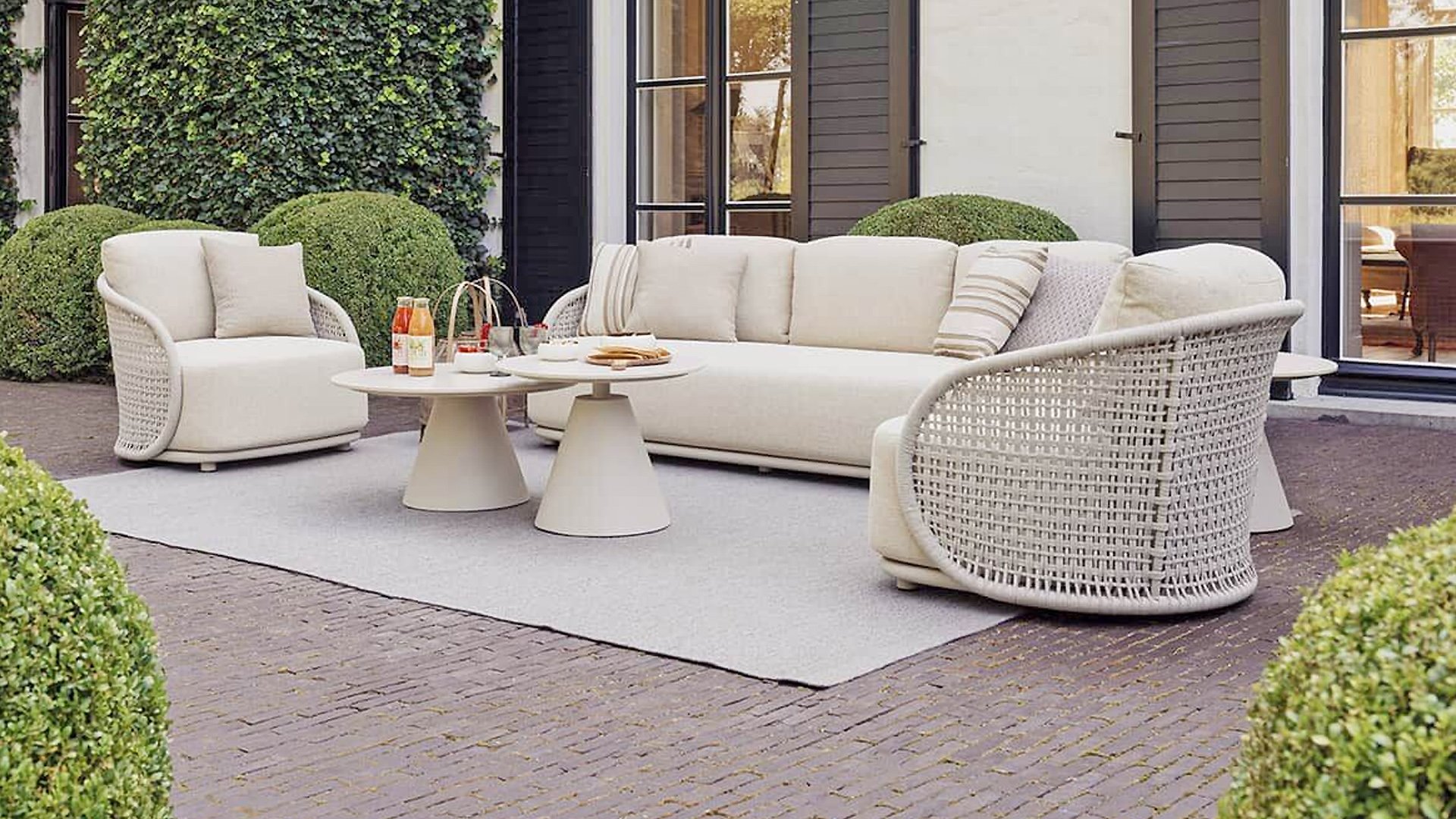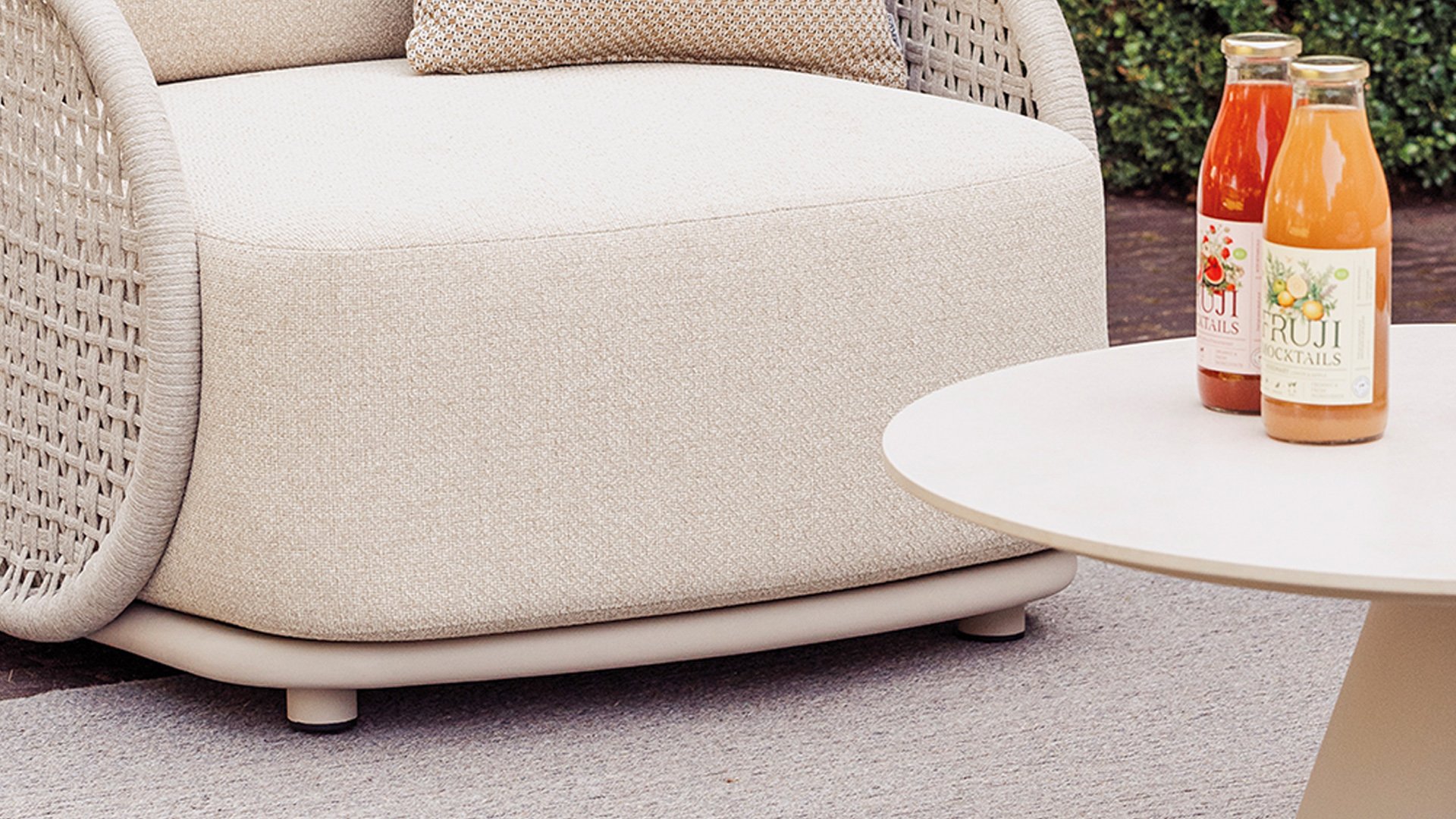 • Hochwertige Materialien: wetterfeste Kissen, ein robustes Aluminiumgestell und Seildetails, die jahrelang schön bleiben.