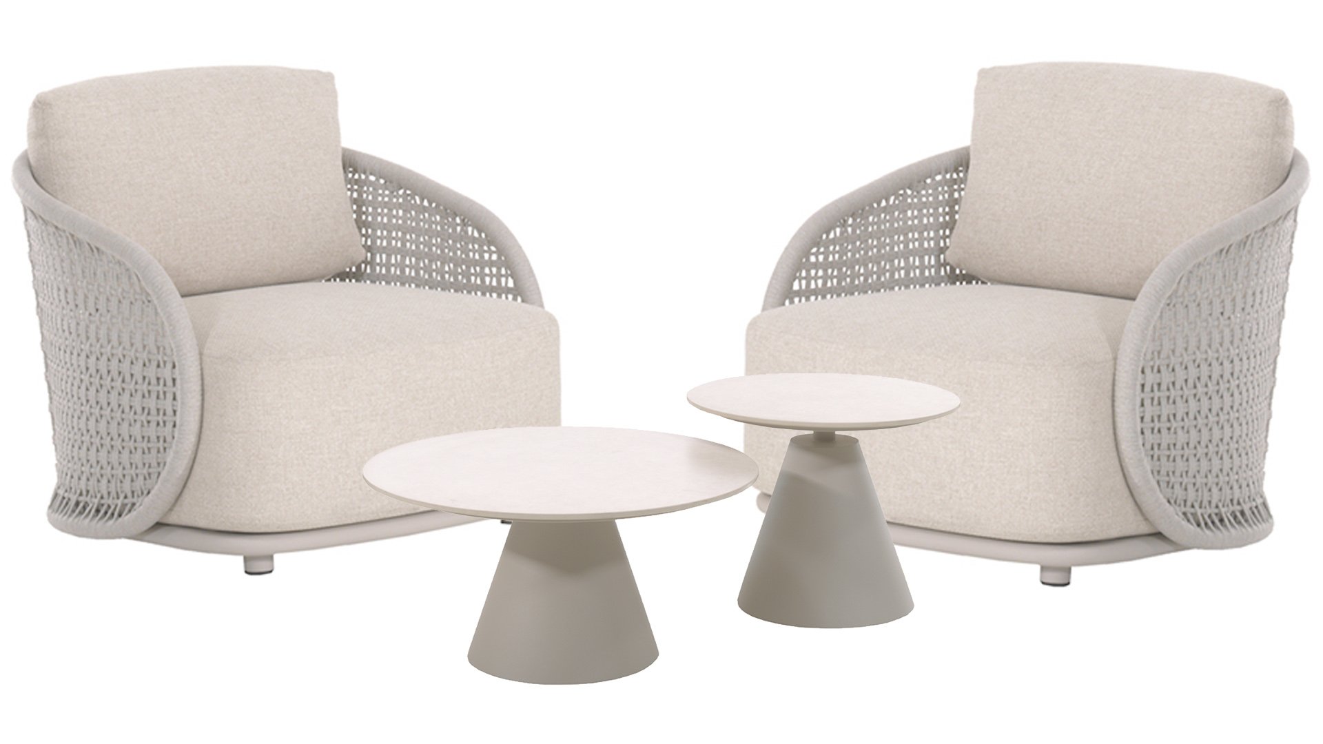 | Materialien Loungegruppe | Rope, Pulverbeschichtet Aluminium/Stahl |