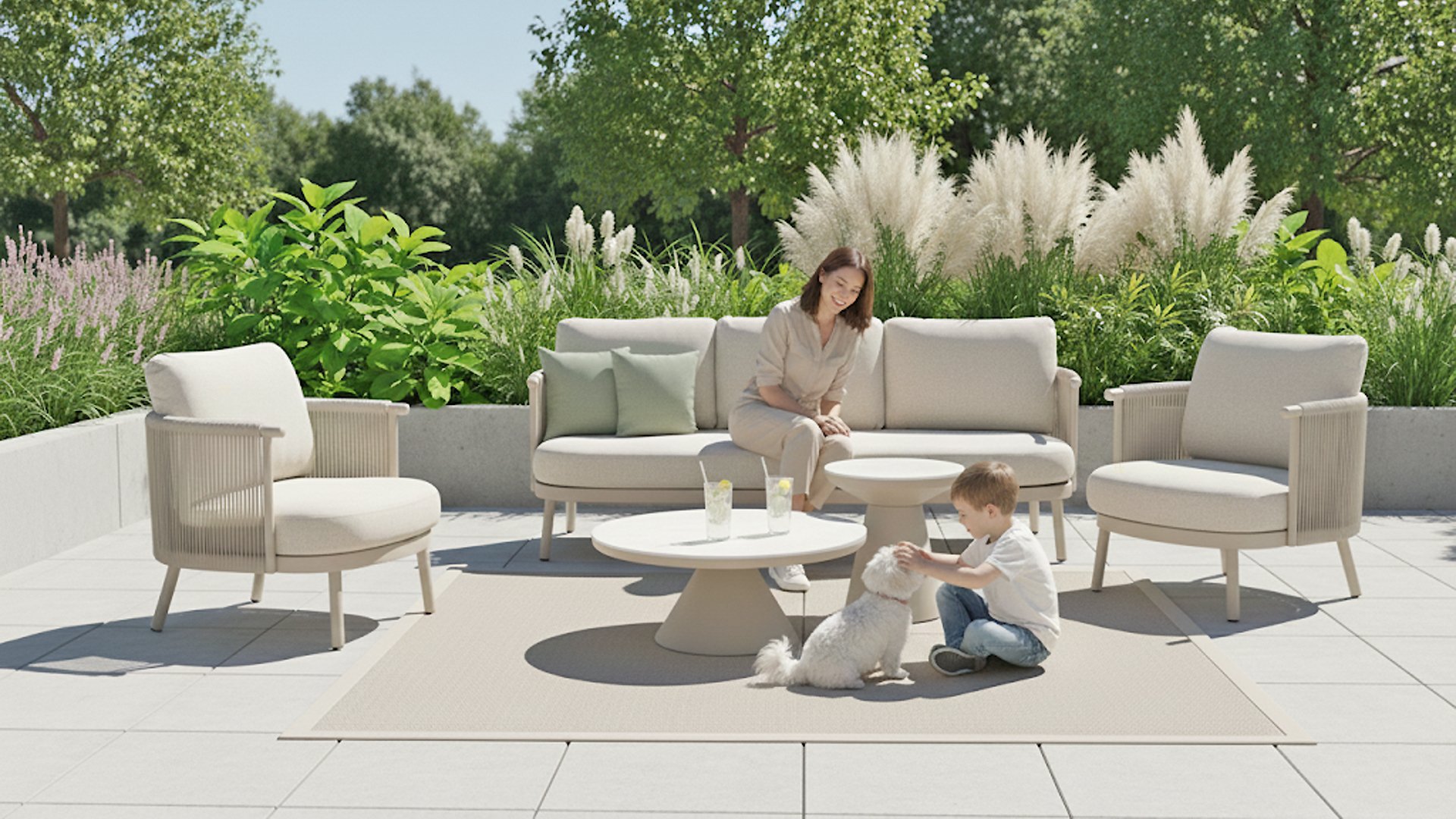 - Hochwertige Materialien: wetterfeste Kissen, ein robustes Aluminium Rahmen und Rope und Details, die jahrelang schön bleiben.