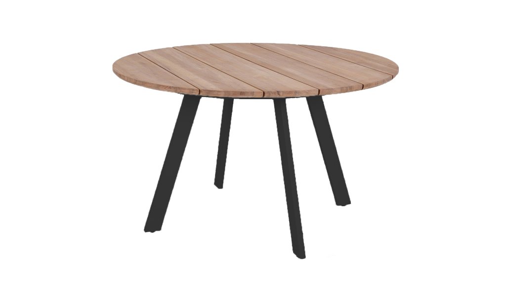 Der kompakte Greenchair Noble Esstisch hat einen Durchmesser von 120 cm. Die Teakholzplatte in Kombination mit dem pulverbeschichteten Aluminiumgestell eignet sich hervorragend für den Außenbereich. Greenchair arbeitet ausschließlich mit zertifiziertem Teakholz. Auf diese Weise können auch zukünftige Generationen Teakholzmöbel genießen.