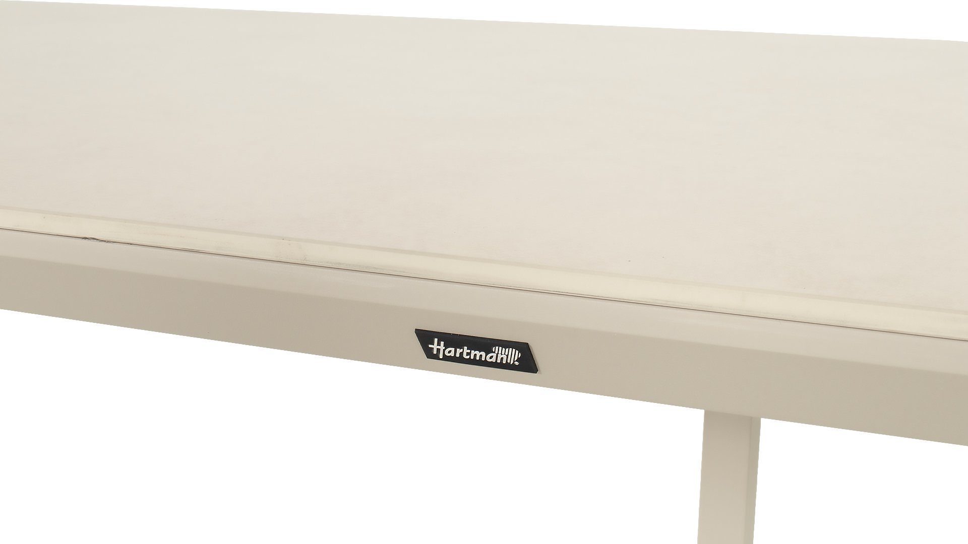 Der Hartman Kyra Tisch in sandfarbener Ausführung verleiht eine warme und natürliche Ausstrahlung. Das Aluminiumgestell ist leicht und pflegeleicht, während die beige Keramik-Tischplatte langlebig und widerstandsfähig gegen alle Witterungseinflüsse ist. Perfekt für stilvolle Mahlzeiten im Freien.