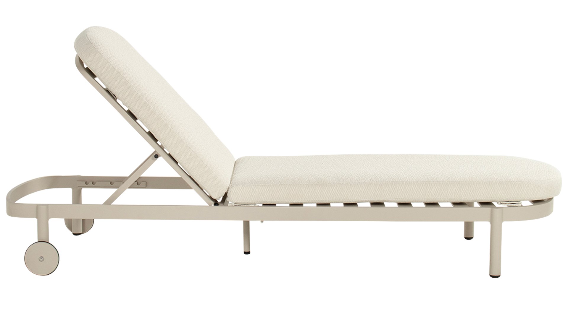 Das Palma Sonnenliege vereint Stil mit praktischem Nutzen. Dank der verstellbaren Rückenlehne und der Rollen lässt sich die Liege leicht bewegen und anpassen. Das beige Weather Ready-Kissen sorgt auch bei wechselhaftem Wetter für Komfort.
