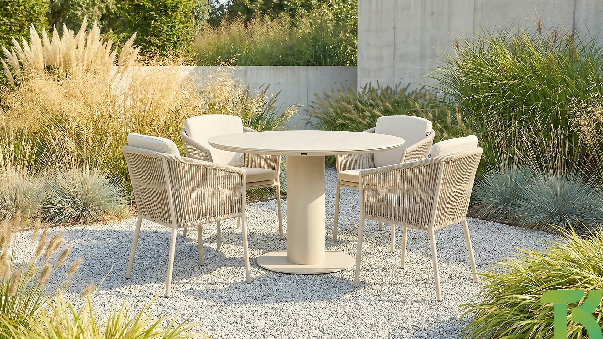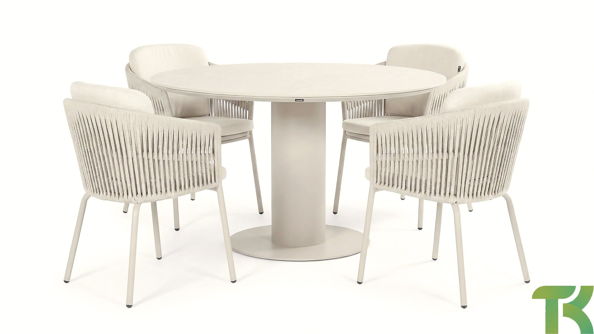 1 x Hartman Girona Tisch Alu-Cappuccino - Keramik Beige Ø120cm
