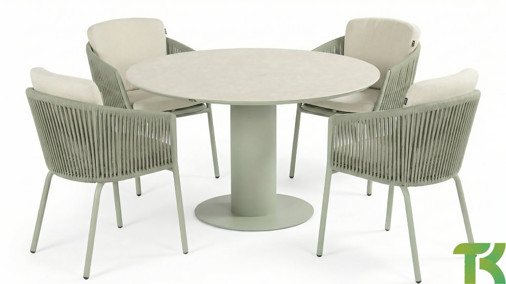 1 x Hartman Girona Tisch Alu-Soft-Green - Keramik Beige Ø120cm
