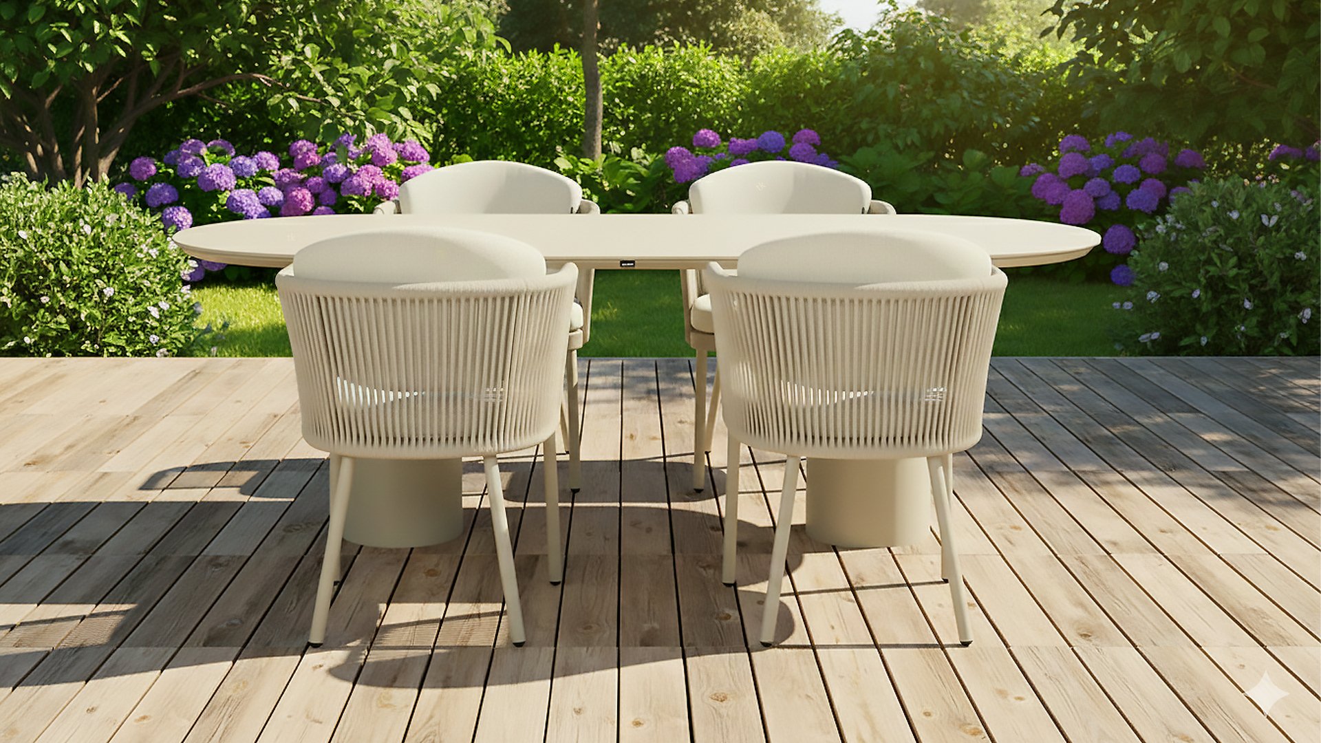 Aluminium ist sehr pflegeleicht und leichtgewichtig, ebenso wie unser Geflecht. Diese praktischen Möbel lassen sich einfach reinigen. Das Aluminium mit einer robusten Pulverbeschichtung ist wetterbeständig und UV-beständig. Aluminium rostet nicht, ist zeitlos und stilvoll.