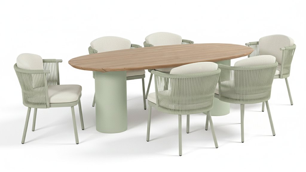 1 x Hartman Malaga Tisch Alu Soft Green - Teak 220x120cm