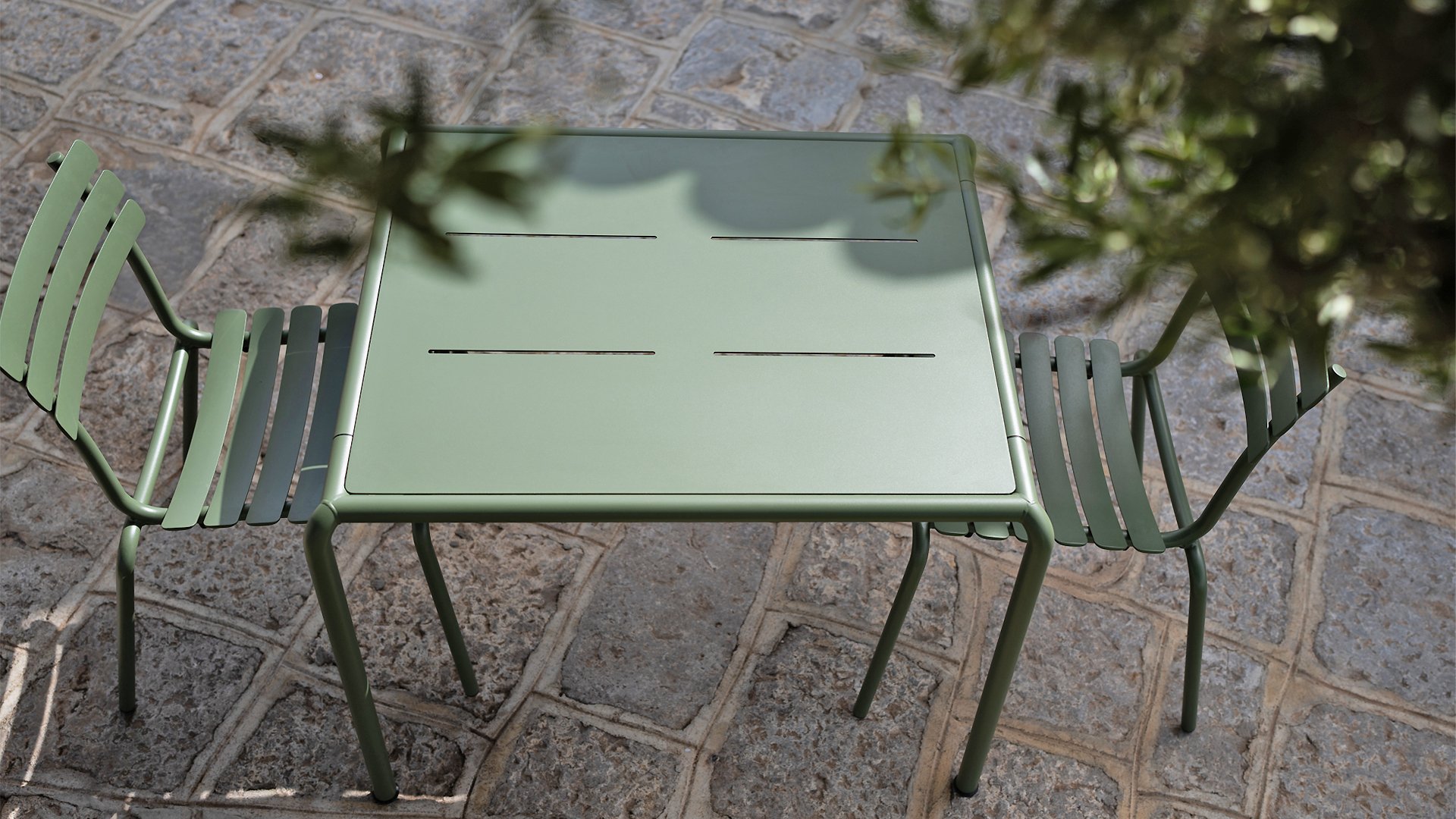 ALUA is verkrijgbaar in 6 kleuren: Muted White / Black / Beige / Cayenne / Ice Blue / Olive Green en biedt de keuze tussen modellen met of zonder armleuningen. Ontworpen voor eenvoudig stapelen, kan tot 10 stuks worden gestapeld. De gebogen aluminium latten zijn zo gevormd dat u een comfortabele zitervaring krijgt en de stoel een zachte en uitnodigende uitstraling geeft.