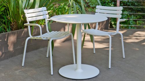ALUA is een veelzijdige aluminium eetkamerstoel, ontworpen voor tal van verschillende omgevingen, of het nu een privébalkon, een openbaar park of een restaurant is. De stoel is gebouwd naar het ontwerpconcept van de HOUE ReCLIPS Eetkamerstoel en vereist minimaal onderhoud.
