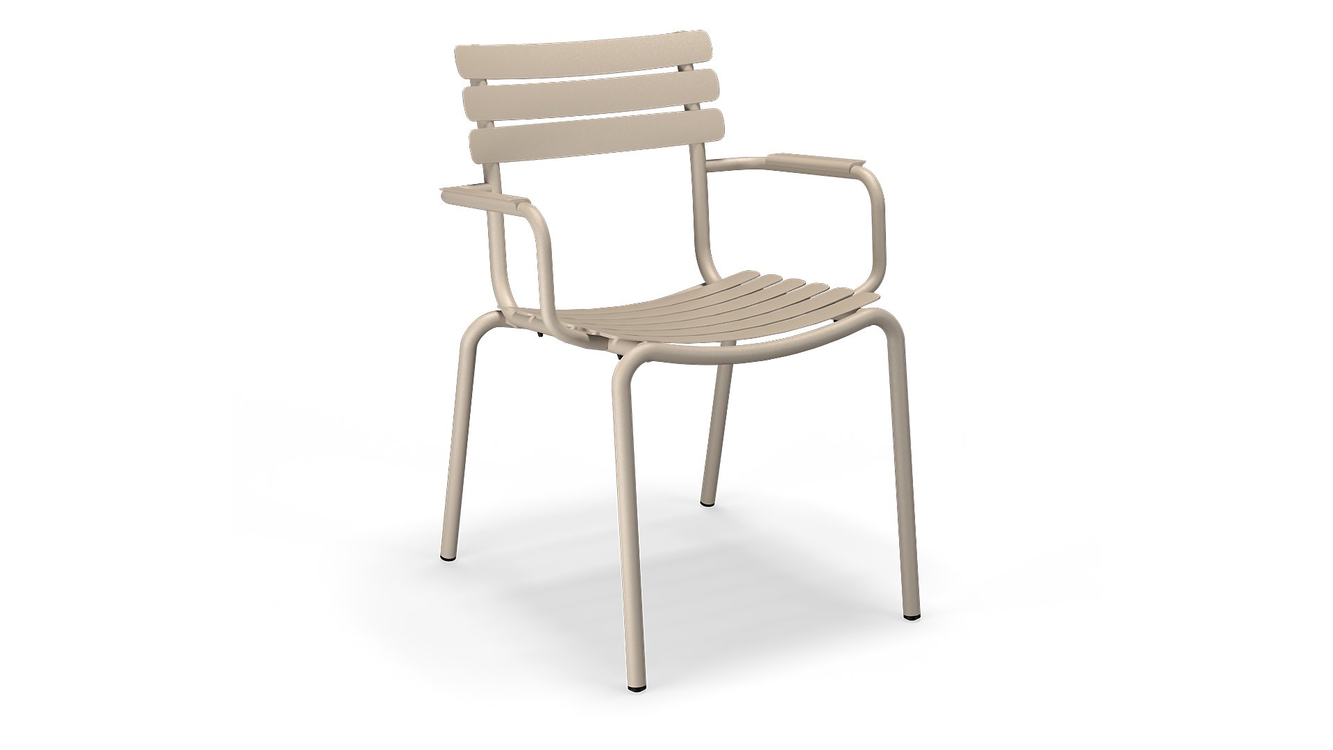 ALUA ist in 6 Farben erhältlich: Muted White / Black / Beige / Cayenne / Ice Blue / Olive Green und bietet die Wahl zwischen Modellen mit oder ohne Armlehnen. Entworfen für einfaches Stapeln, können bis zu 10 Stück gestapelt werden. Die gebogenen Aluminiumleisten sind so geformt, dass sie ein komfortables Sitzerlebnis bieten und dem Stuhl ein weiches und einladendes Erscheinungsbild verleihen.