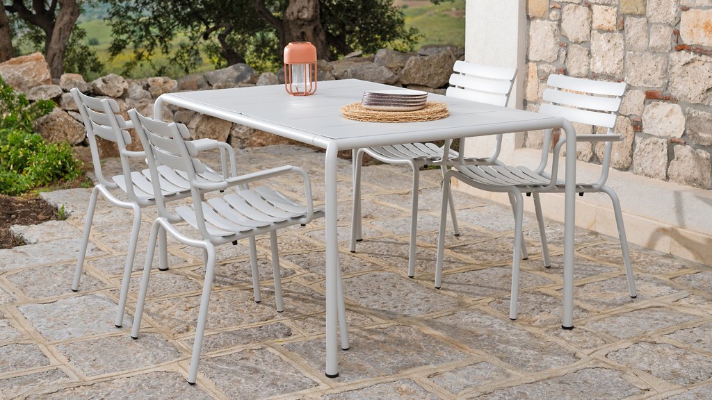 Aluminium ist sehr wartungsfreundlich und leicht. Diese praktischen Möbel sind leicht zu reinigen. Unser Aluminium mit einer festen Pulverbeschichtung ist witterungsbeständig und UV-beständig. Aluminium ist nicht rostanfällig, zeitlos und stilvoll.
