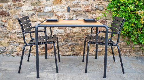 Die Tischplatte besteht aus Europäisches Thermo-eschenholz. Unsere Thermoesche stammt aus nachhaltig bewirtschafteten europäischen Wäldern (FSC ® - FSC C153404) und wird bei einer Temperatur von mindestens 215 °C ohne Zusatz chemischer Substanzen thermisch behandelt, wobei Dampf verwendet wird, um Splittern und Reißen zu verhindern. Diese Behandlung verleiht dem Eschenholz seine beeindruckende Haltbarkeit und verhindert die Ansiedlung von Pilzen und Schimmelpilzen.