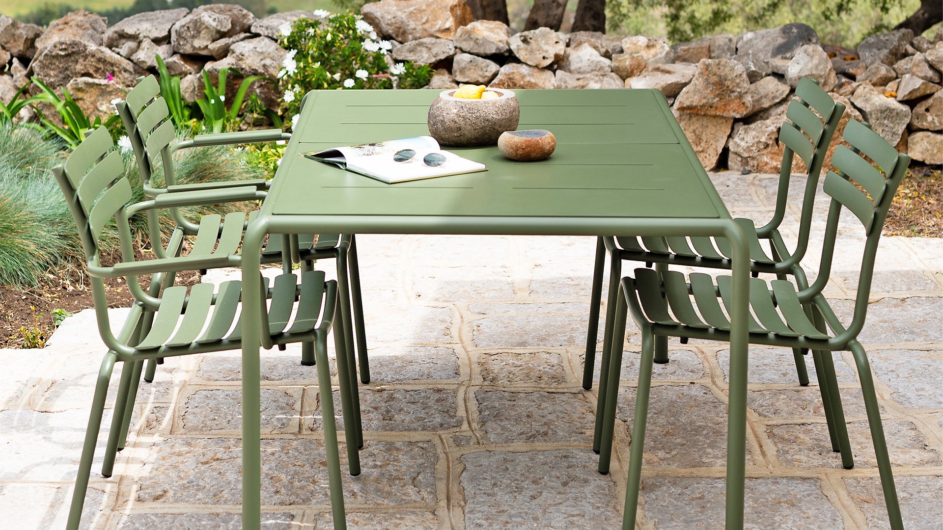 Aluminium ist sehr wartungsfreundlich und leicht. Diese praktischen Möbel sind leicht zu reinigen. Unser Aluminium mit einer festen Pulverbeschichtung ist witterungsbeständig und UV-beständig. Aluminium ist nicht rostanfällig, zeitlos und stilvoll.