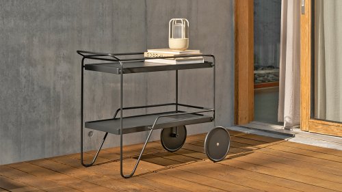 Der stilvolle Servierwagen Click von HOUE vereint dänisches Minimalismus-Design mit außergewöhnlicher Stabilität und bietet eine beeindruckende statische Tragkraft von 100 kg. Sein robustes, pulverbeschichtetes Stahlgestell und die Aluminiumplatte machen diesen Wagen zu einem wetterfesten Blickfang. Erhältlich in Schwarz, Olivgrün und Beige. Ob zum Servieren von Getränken auf der Terrasse oder als mobiler Pflanzenständer – dieses funktionale Designstück wertet jedes Interieur auf.