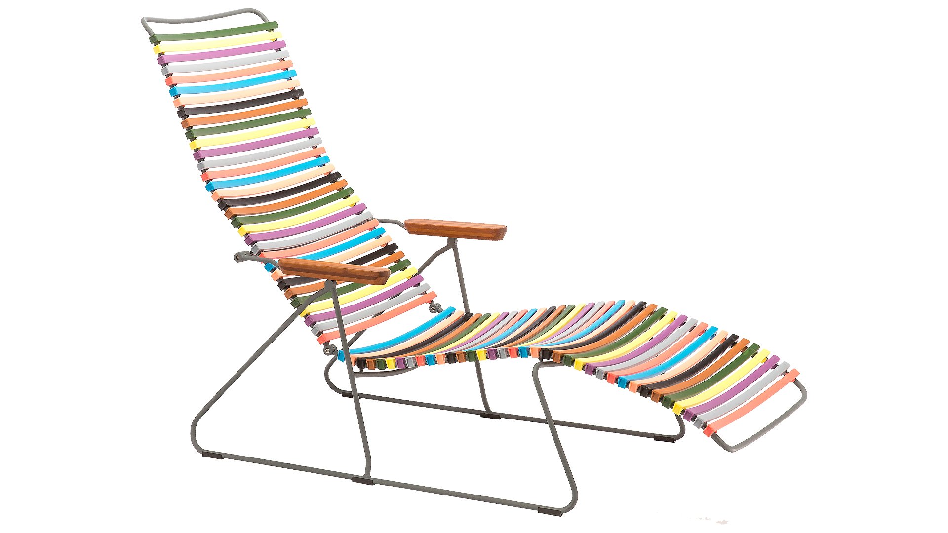 Die Houe Click Sonnenliegen sind in folgenden Farben erhältlich: Schwarz, Dunkelgrau, Staubiges Grün, Multi-1 Rot/Gelb, Multi-2 Blau/Grün, Olivgrün, Paprika, Petrol, Taubengrau, Tannengrün, Sand, Staubig Hellblau, Dunkelblau