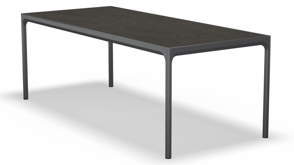 Lernen Sie Houe Four Ceramics kennen: eine Tischserie, die industrielles Minimalismus und höchsten Bedienkomfort perfekt vereint. Erhältlich in drei Größen – 90 x 90 cm, 160 x 90 cm und 210 x 90 cm – bietet sie für jeden Außenbereich das passende Modell. Das elegante Design wird von einem robusten, pulverbeschichteten Aluminiumrahmen getragen, während die edle Keramiktischplatte nicht nur luxuriös wirkt, sondern auch kratzfest ist.
