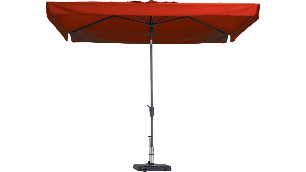 Polyester ist in vielen verschiedenen Qualitätsklassen erhältlich. Polyester der Staubklasse 2 werden in den Sonnenschirmen von Madison verwendet, was bedeutet, dass die Polyesterfasern nur nach der Herstellung und nicht während der Herstellung des Gewebes glasiert werden. Daher ist es besser, die ganze Saison nicht ungeschützt draußen zu lassen. Verwenden Sie eine Schutzabdeckung, um zu verhindern, dass sich das Tuch verfärbt oder verschmutzt. Polyester ist ein fester Materialtyp und trägt sich kaum ab. Bei einem kleinen Regenschauer bleibt man trocken unter einem Sonnenschirm aus Polyester. Es ist jedoch zu beachten, dass kein Sonnenschirm vollständig wasserdicht ist und daher nicht als Regenschirm fungieren kann.