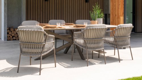 Töne und Materialien aus der Natur Es geht darum, eine Auszeit vom Alltag zu nehmen und in die verführerische Schönheit der Natur einzutauchen. Gestalten Sie Ihren Außenbereich mit natürlichen Farbtönen und Materialien. Dieses Konzept lässt Ihre Gedanken schweifen und bietet die perfekte Mischung aus Komfort und Stil für alle, die Gelassenheit und Authentizität schätzen.